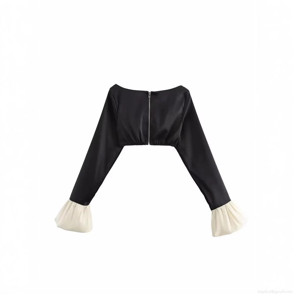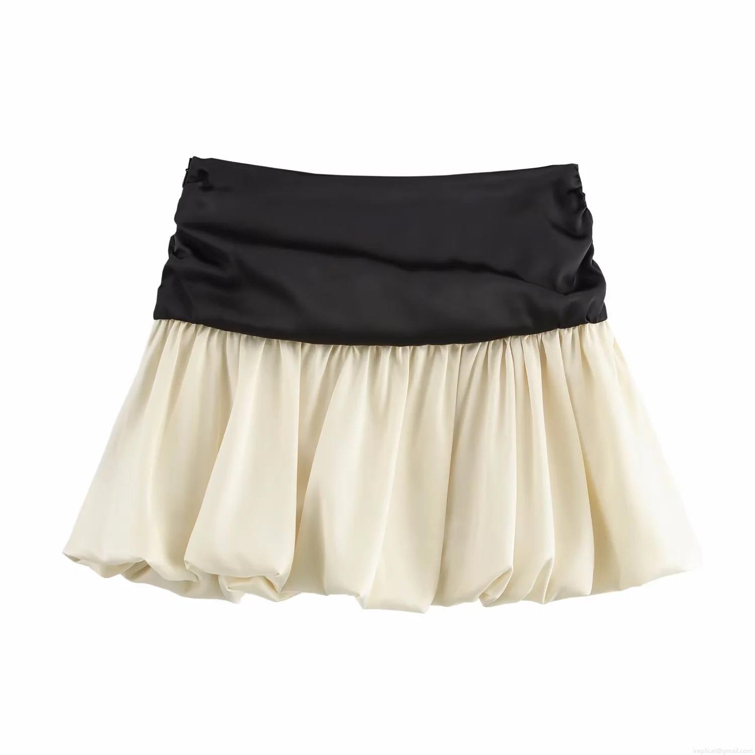 • Women's Fashion Satin 2 Piece Skirt Set Long Sleeve Bow Back Crop Top and Color Block Bubble Mini Skirt Elegant Party Clubwear Spice Girl Style Outfits