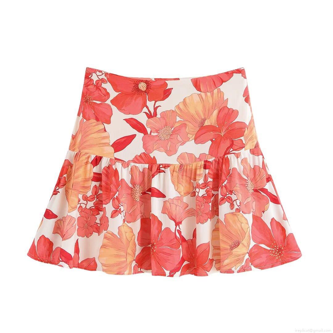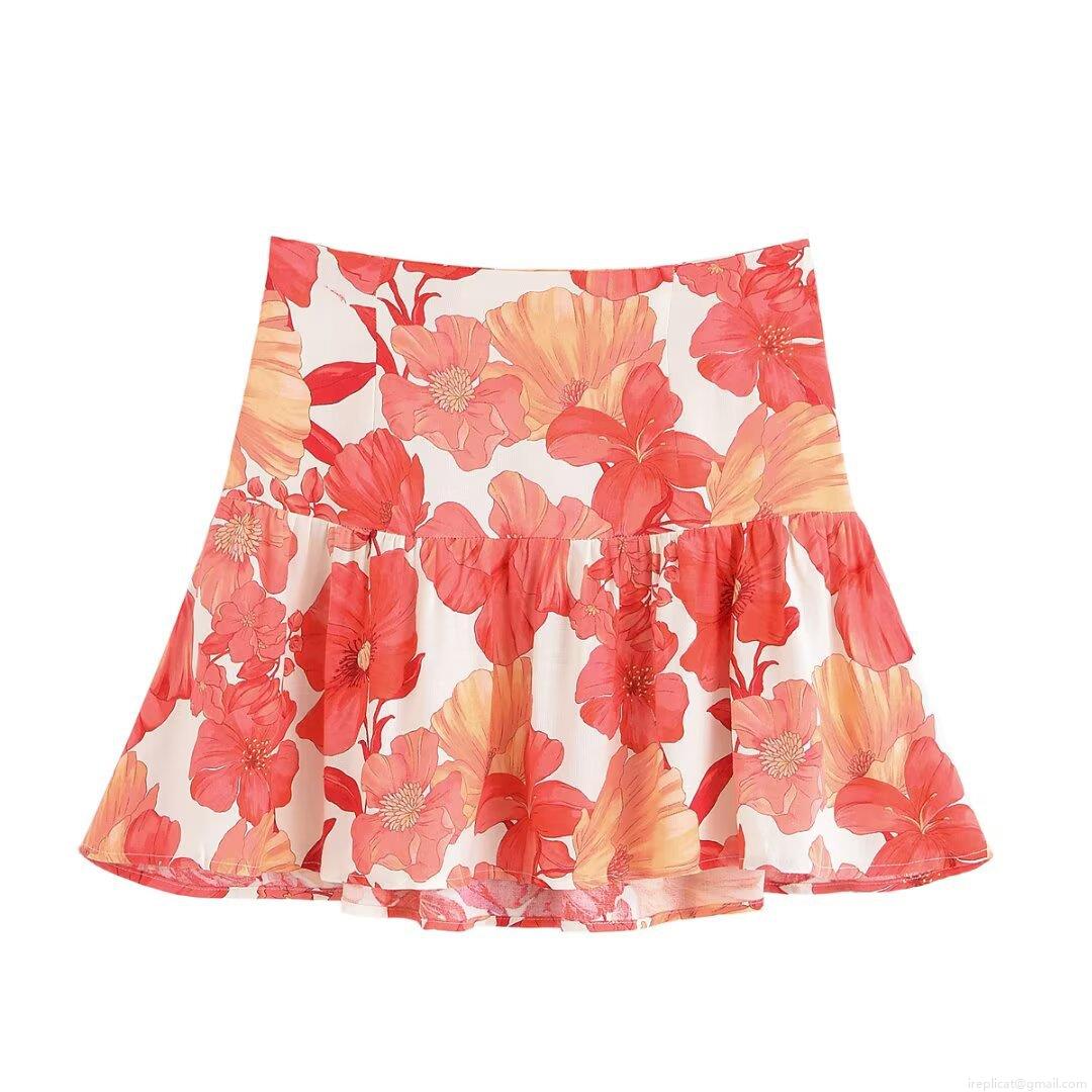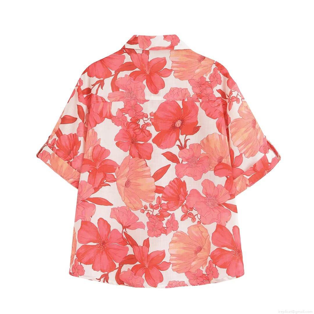 • Women's Floral Print Short Sleeve Shirt And Mini Skirt Casual Two Piece Set Polyester Cotton Blend Lapel Pocket Top High Waist Skirt Vacation Streetwear Outfit