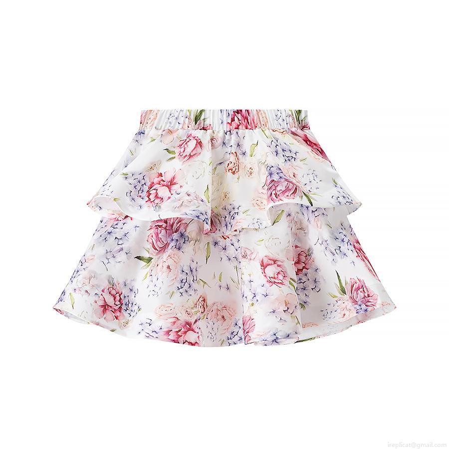 Floral Pattern, Flowers, Printing, Neckband, Lace, Backless, Cake Skirt