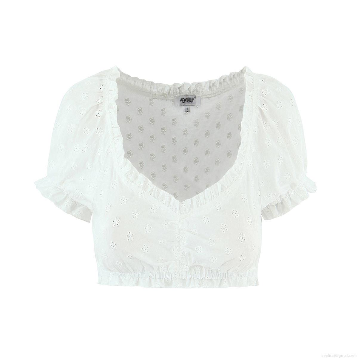 Hollow Out, Ruffles, Flowers, Pleats, Puff Sleeves, Openwork Embroidery