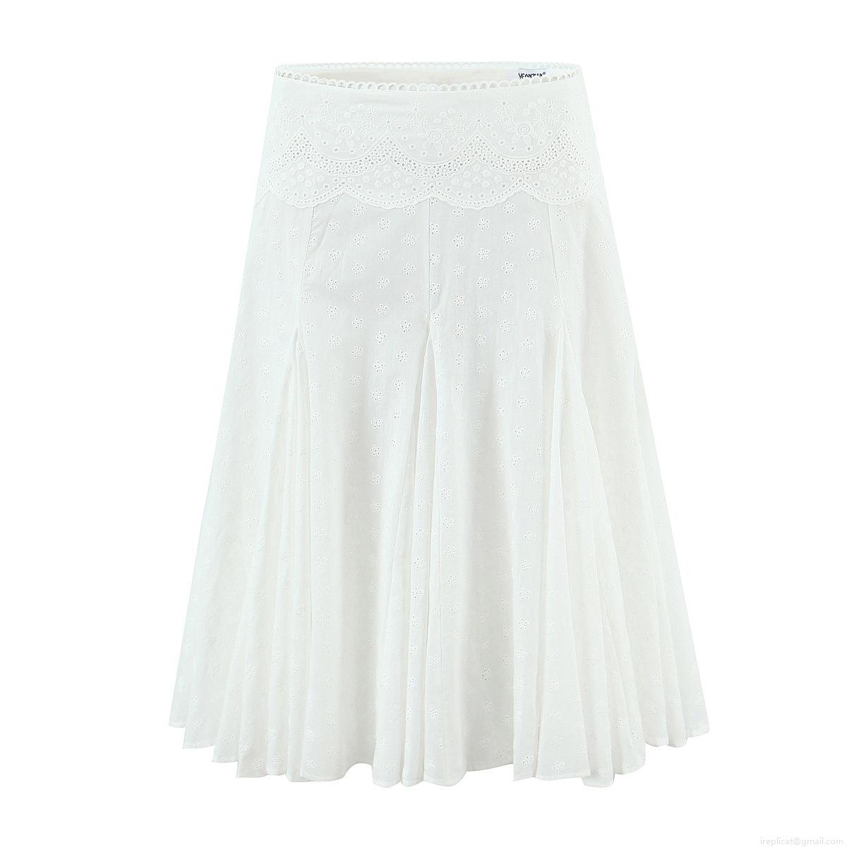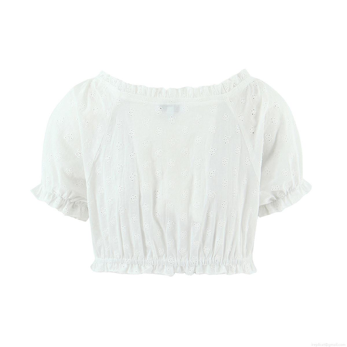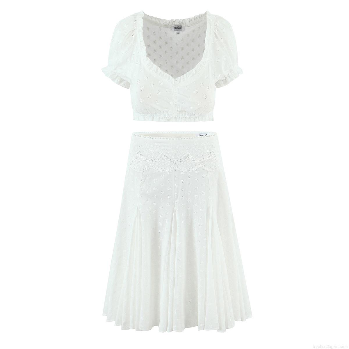 • Women's French Retro Eyelet Embroidery Two Piece Set White 100% Cotton Puff Sleeve Crop Top and Ruffle A-Line Midi Skirt Pastoral Casual Outfits