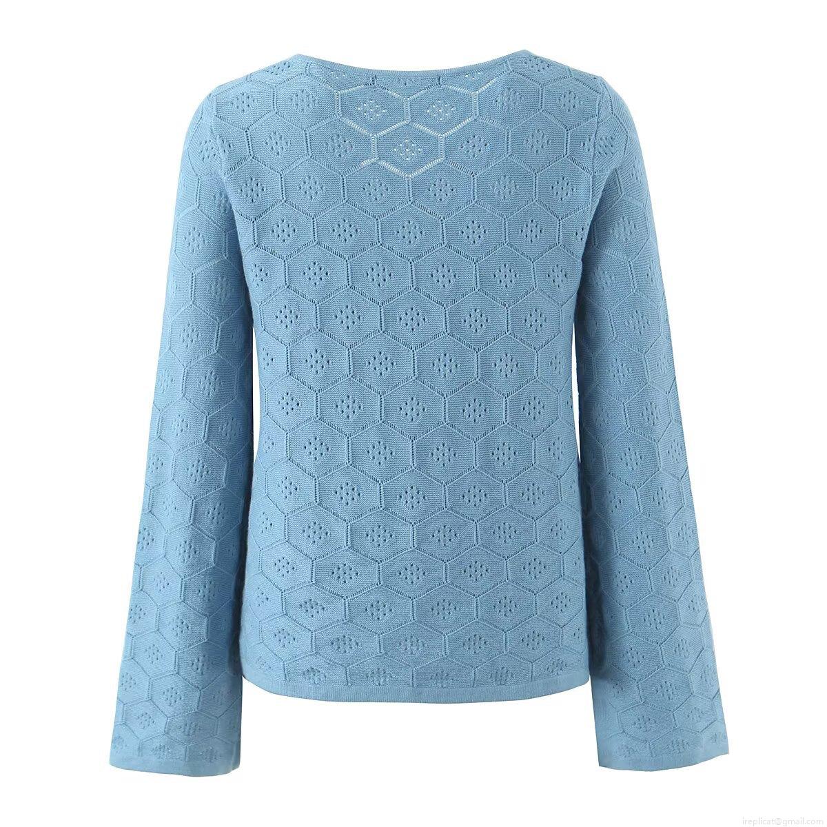 Solid Color, Hollow Design, Honeycomb Texture, Bell Sleeves, Button Decoration, Fabric-covered Buttons, Honeycomb Hexagonal Hollow