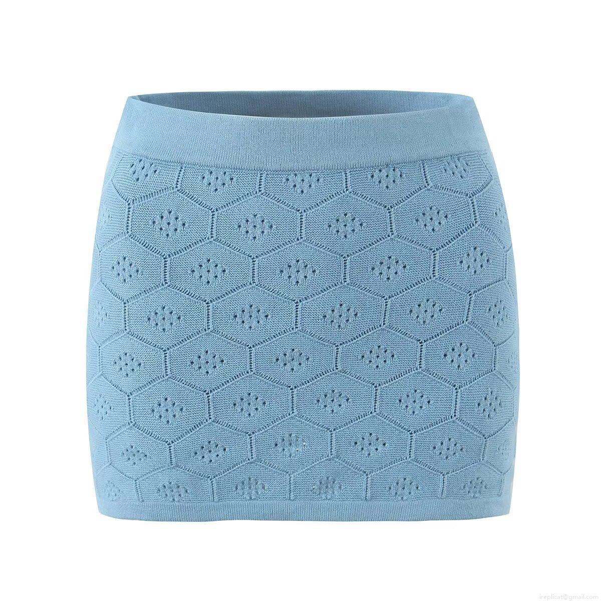• Women's French Style Hollow Out Knitted Skirt Set Long Sleeve Round Neck Sweater And Bodycon Mini Skirt Two Piece Outfits For Spring Summer