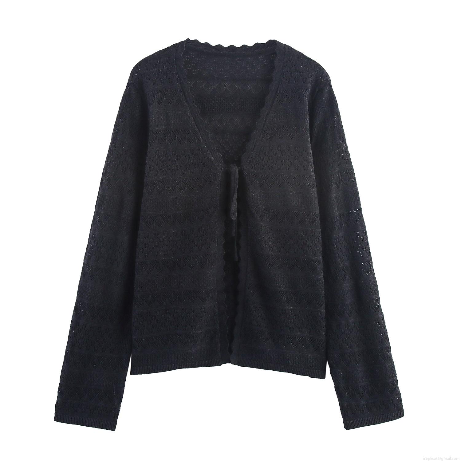 • Women's Hollow Out Knit Skirt Set 2 Piece Outfit V-Neck Lace Up Cardigan And High Waist Maxi Skirt Streetwear Casual Spring Autumn Crochet Apparel