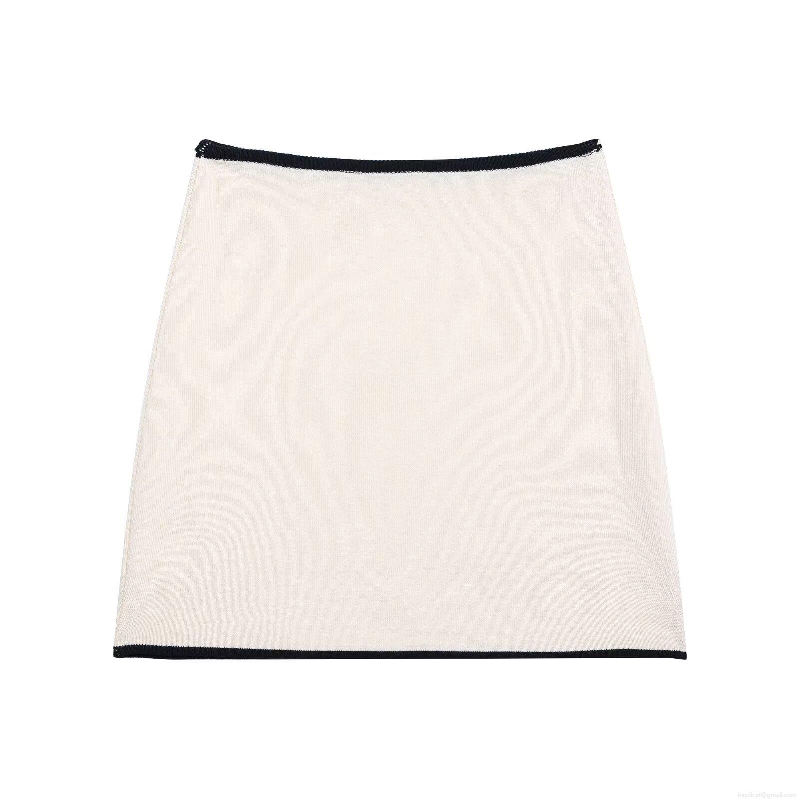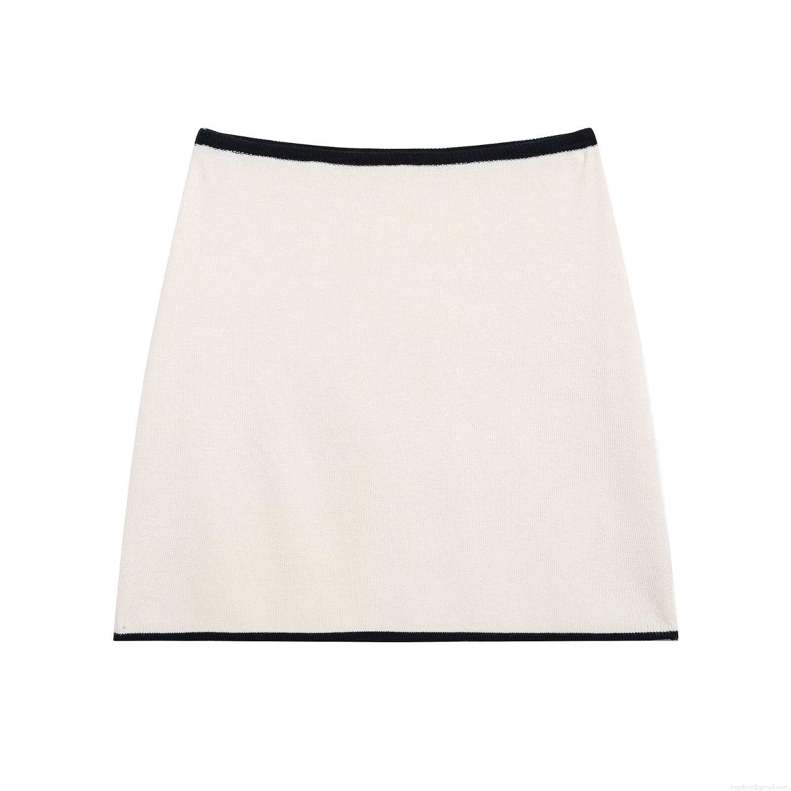 Women's Knit Short Sleeve Cardigan And Mini Skirt Set Contrast Piping Button Up Knitted Two Piece Outfit Summer Streetwear Casual Outfit