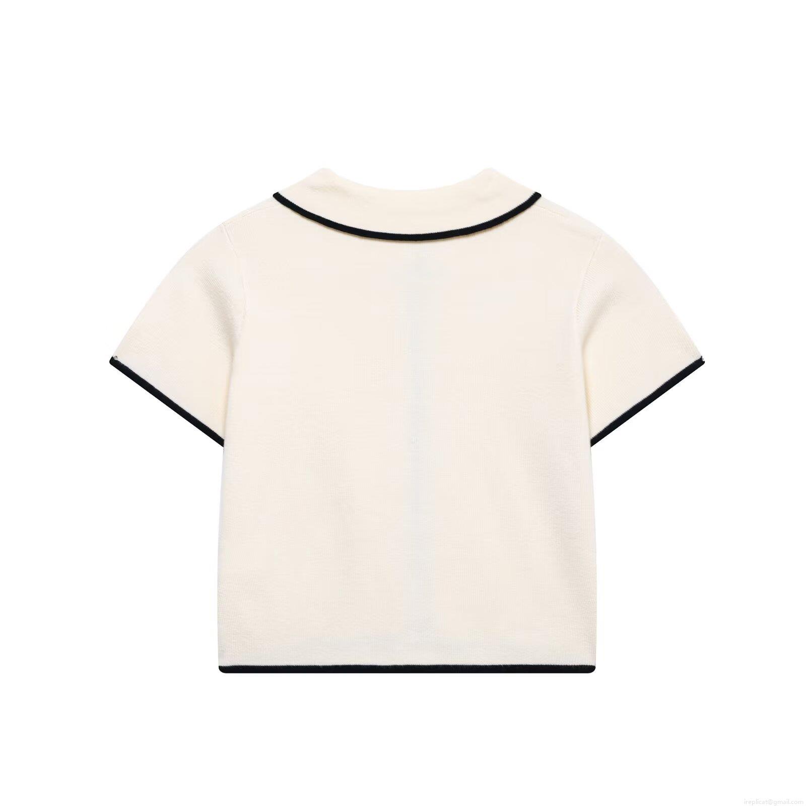 • Women's Knit Short Sleeve Cardigan And Mini Skirt Set Contrast Piping Button Up Knitted Two Piece Outfit Summer Streetwear Casual Outfit
