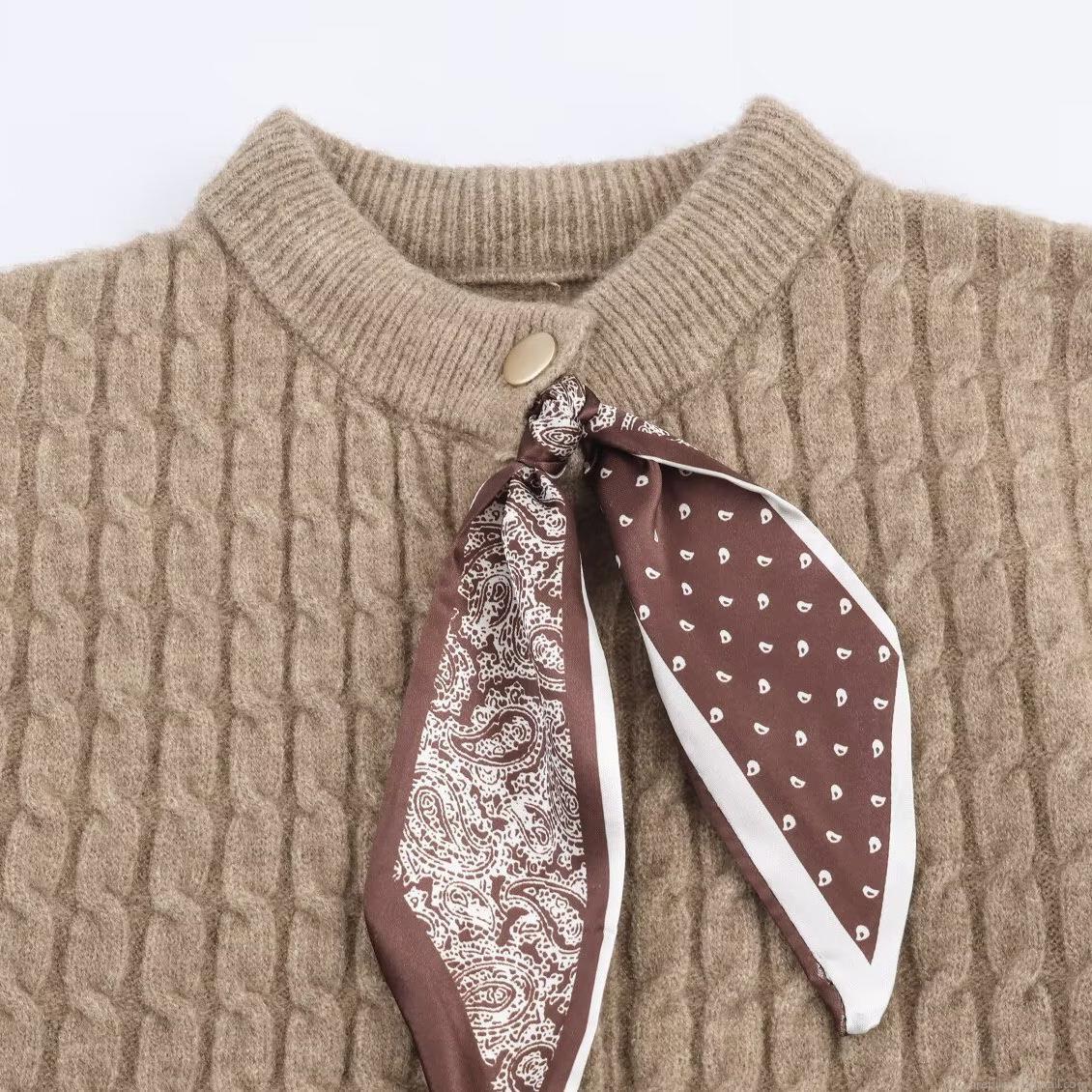Women's Knit Two Piece Set Long Sleeve Shawl Cape Sweater Top And Midi Skirt With Silk Scarf Decoration Elegant Polyester Autumn Winter Skirt Suit Outfits