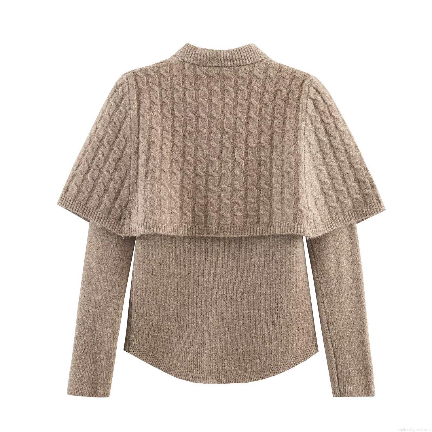 • Women's Knit Two Piece Set Long Sleeve Shawl Cape Sweater Top And Midi Skirt With Silk Scarf Decoration Elegant Polyester Autumn Winter Skirt Suit Outfits