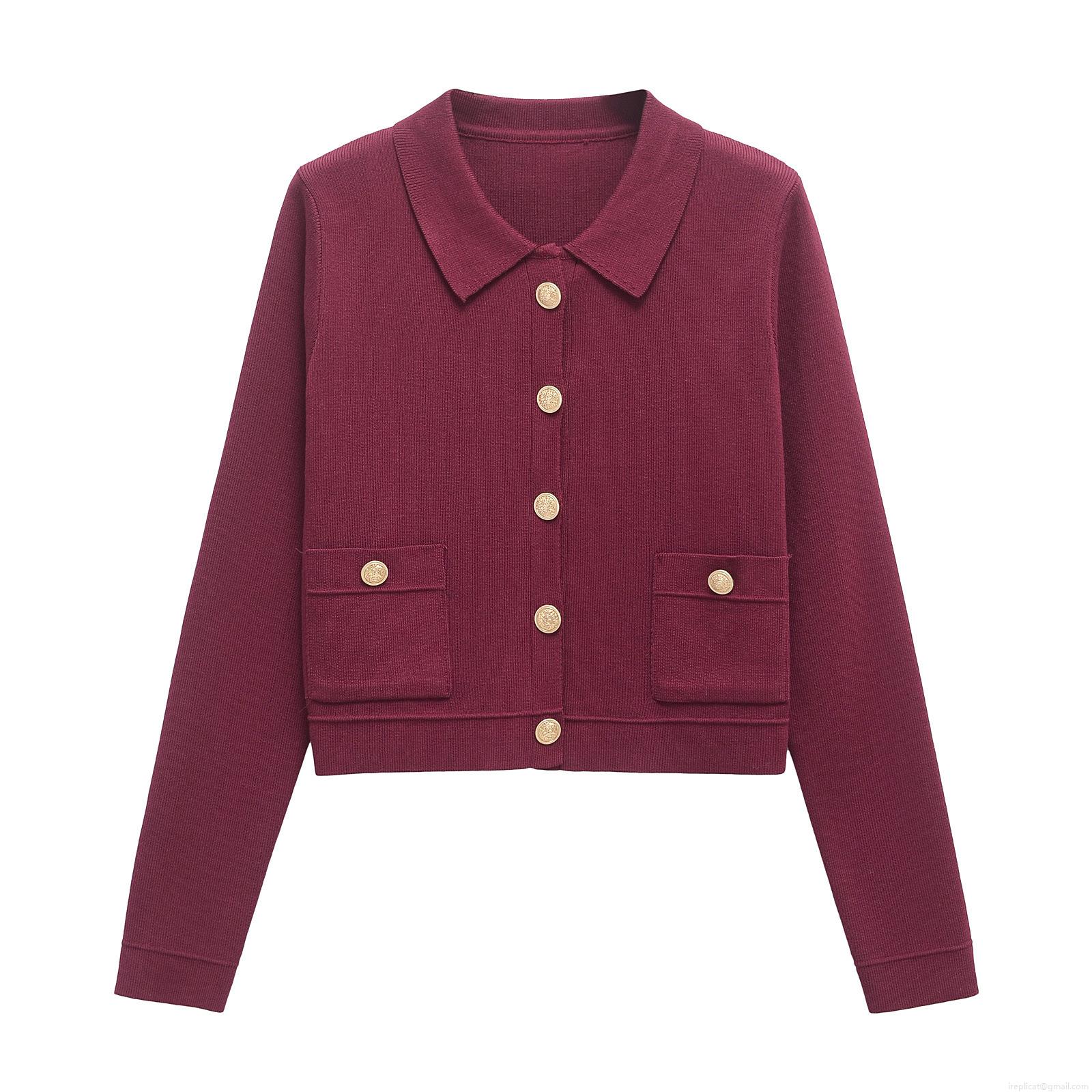 Women's Knitted Skirt Set Wine Red Long Sleeve Cardigan And Pleated Mini Skirt Elegant Mercerized Cotton Solid Color Outfit With Gold Buttons For Party Lady