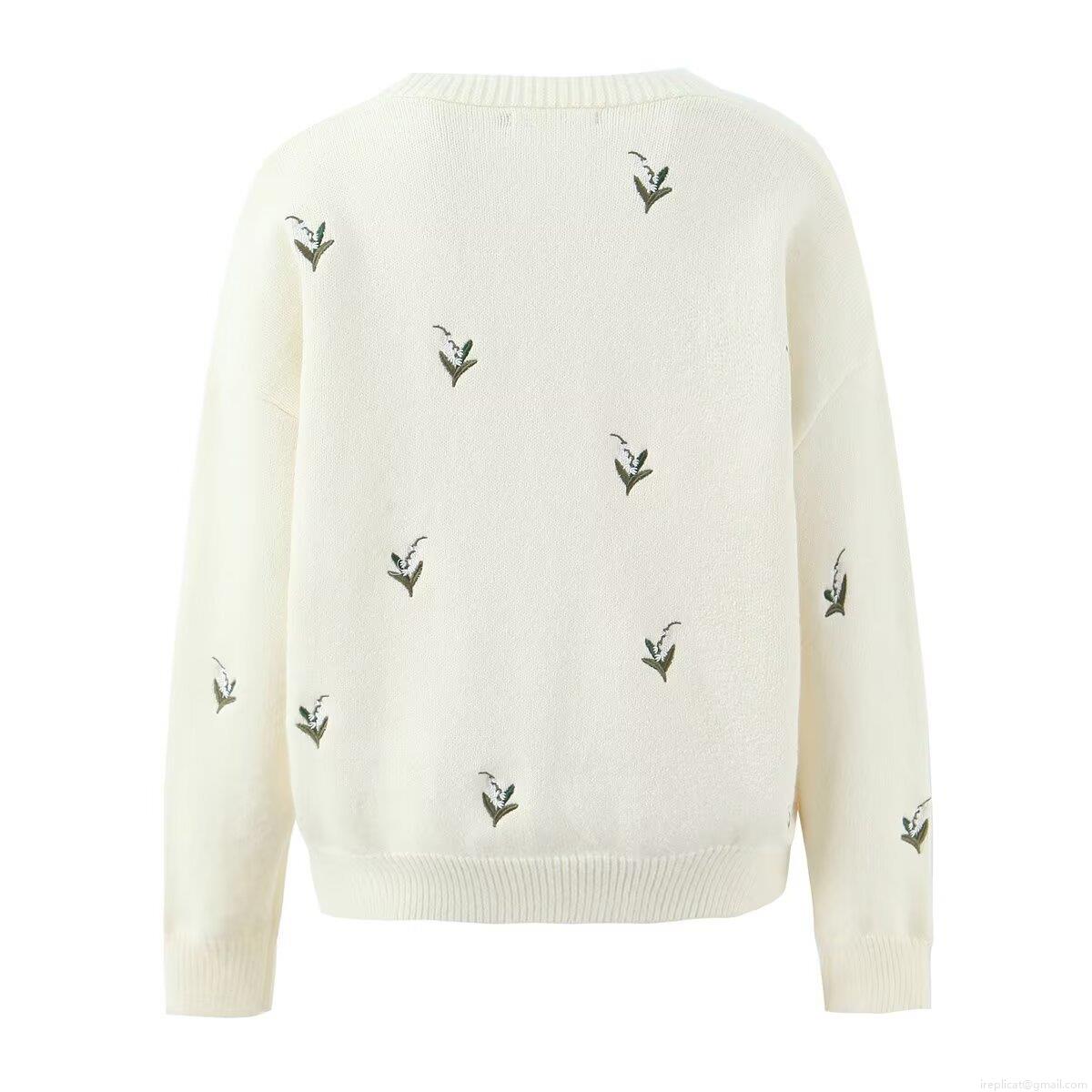 Women's Knitted Two Piece Set Elegant Lily Of The Valley Embroidery V Neck Cardigan And High Waist Long Skirt Autumn Casual Knitwear Outfits