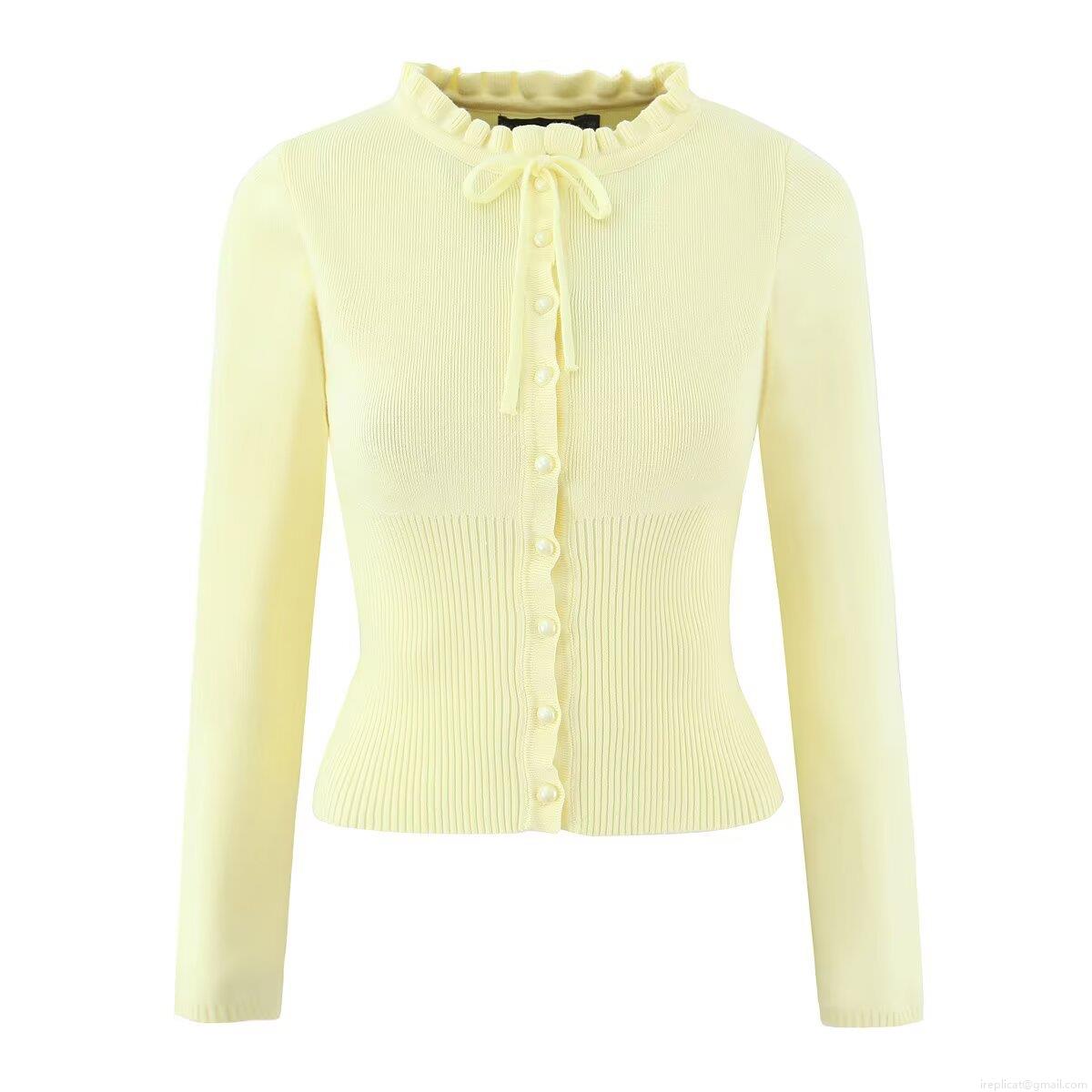 Solid Color, Wood Ear Edge, Pearl Button, Ruffles, Bow Tie, Knitted Texture