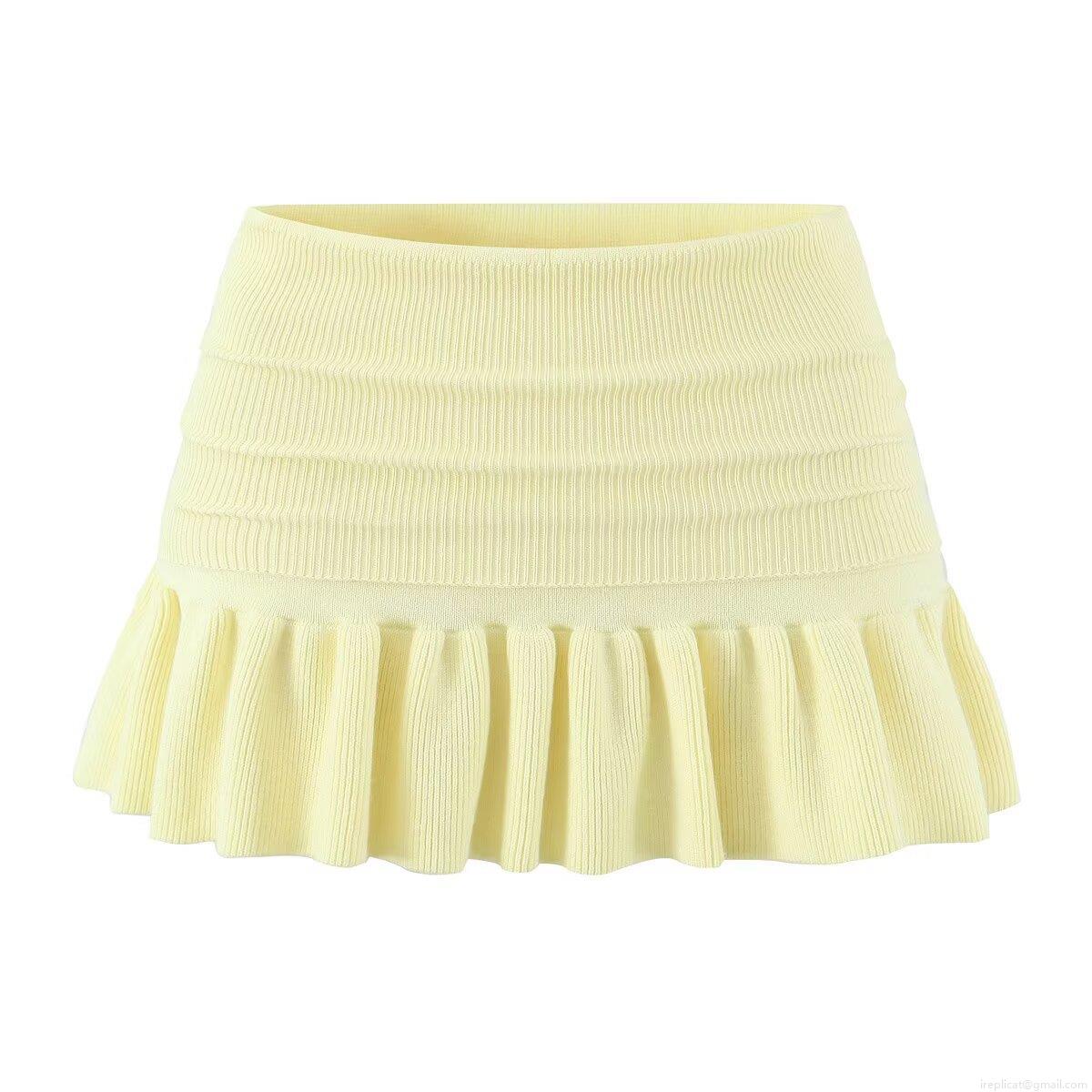 Women's Knitted Two Piece Set Long Sleeve Wood Ear Collar Cardigan Top And Ruffle Pleated Mini Skirt Set Solid Color Casual Streetwear Outfits For Women