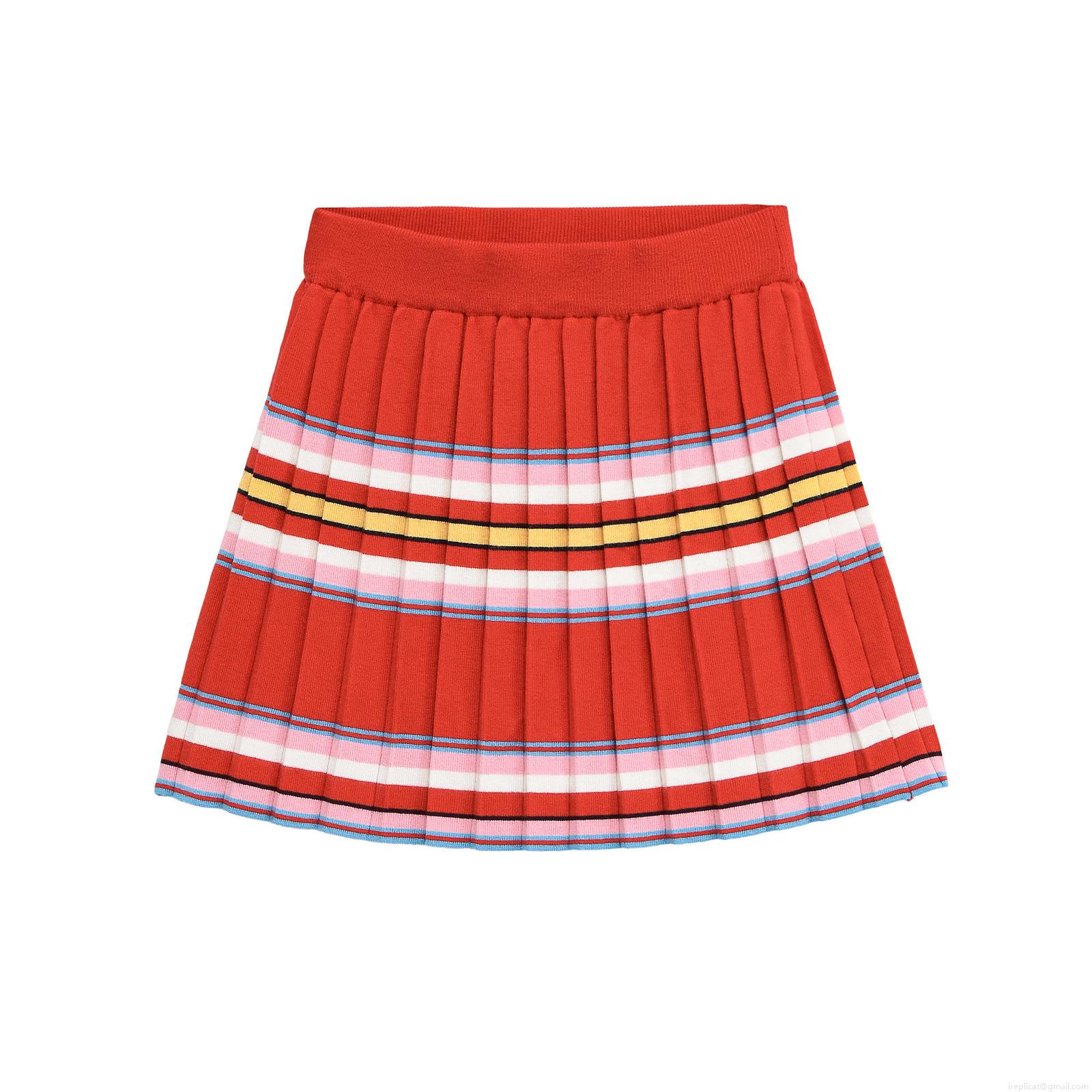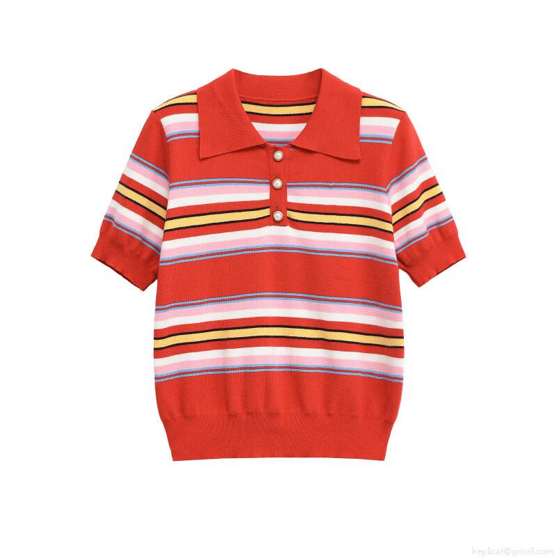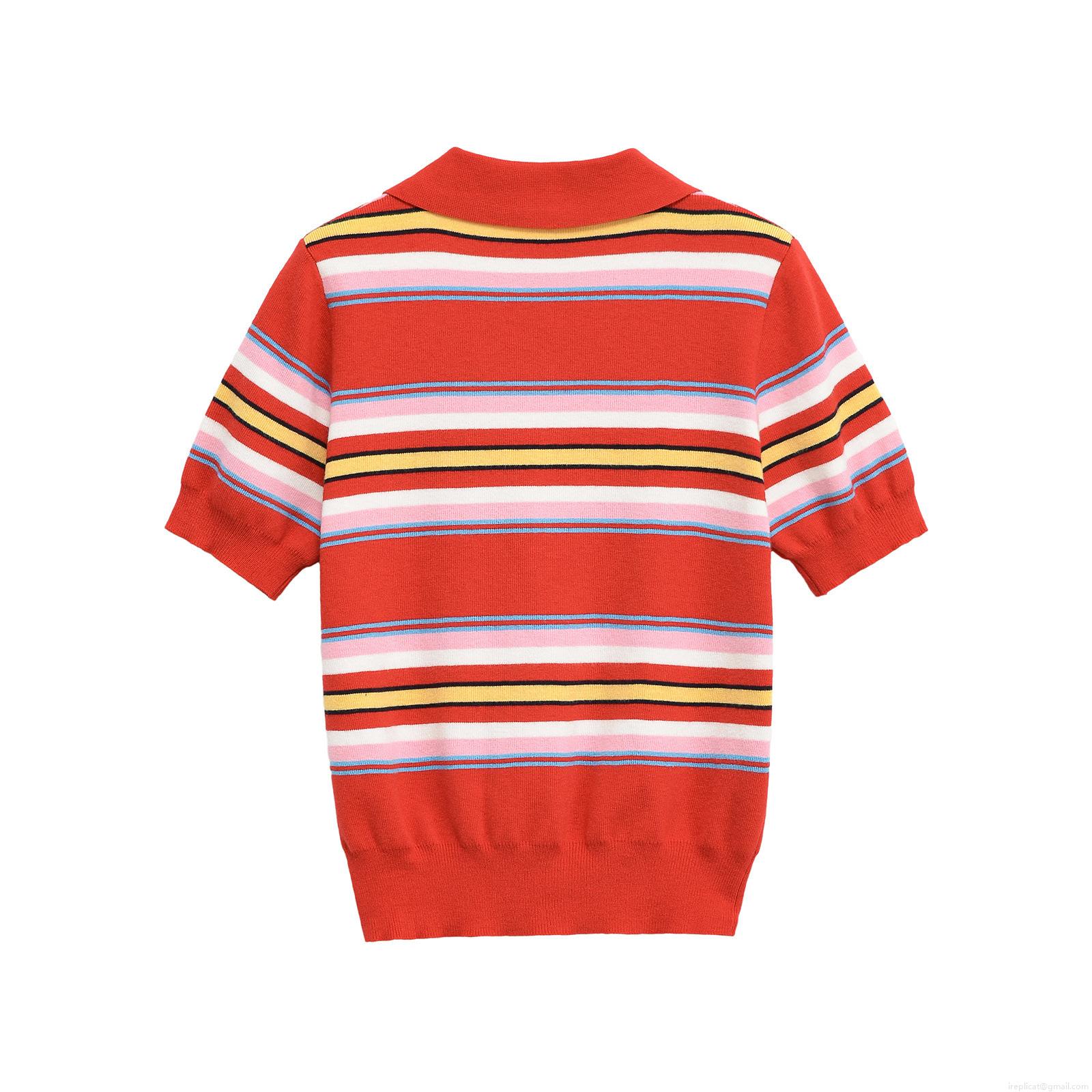 • Women's Knitted Two-Piece Set Stripe Polo Shirt and Pleated Skirt Set Multicolor Striped Polyester Knit Streetwear Co-ords for Women