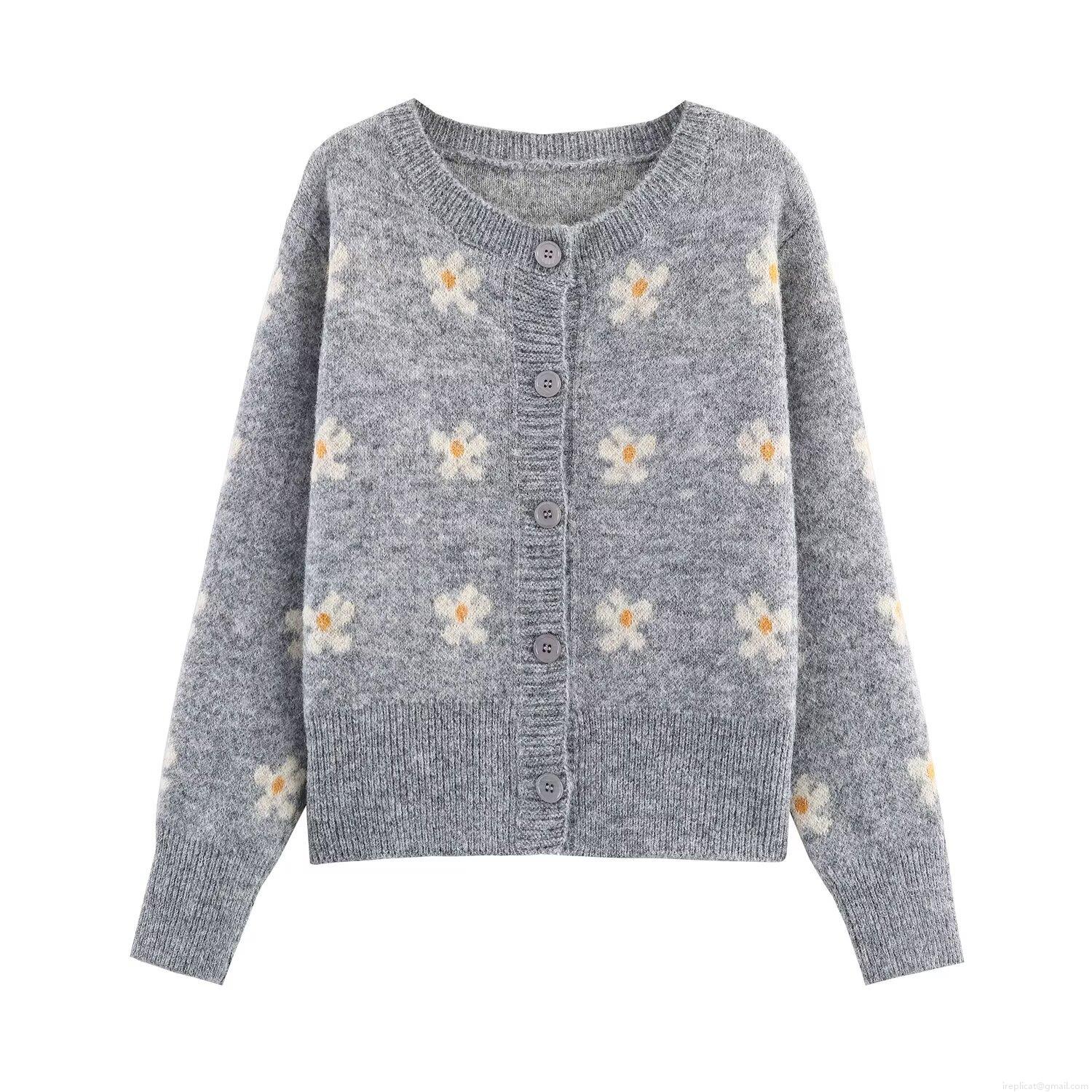 Women's Knitted Two-Piece Skirt Set Jacquard Small Floral Button Up Cardigan and Mini Skirt 100% Polyester Autumn Winter Western Street Style Outfits