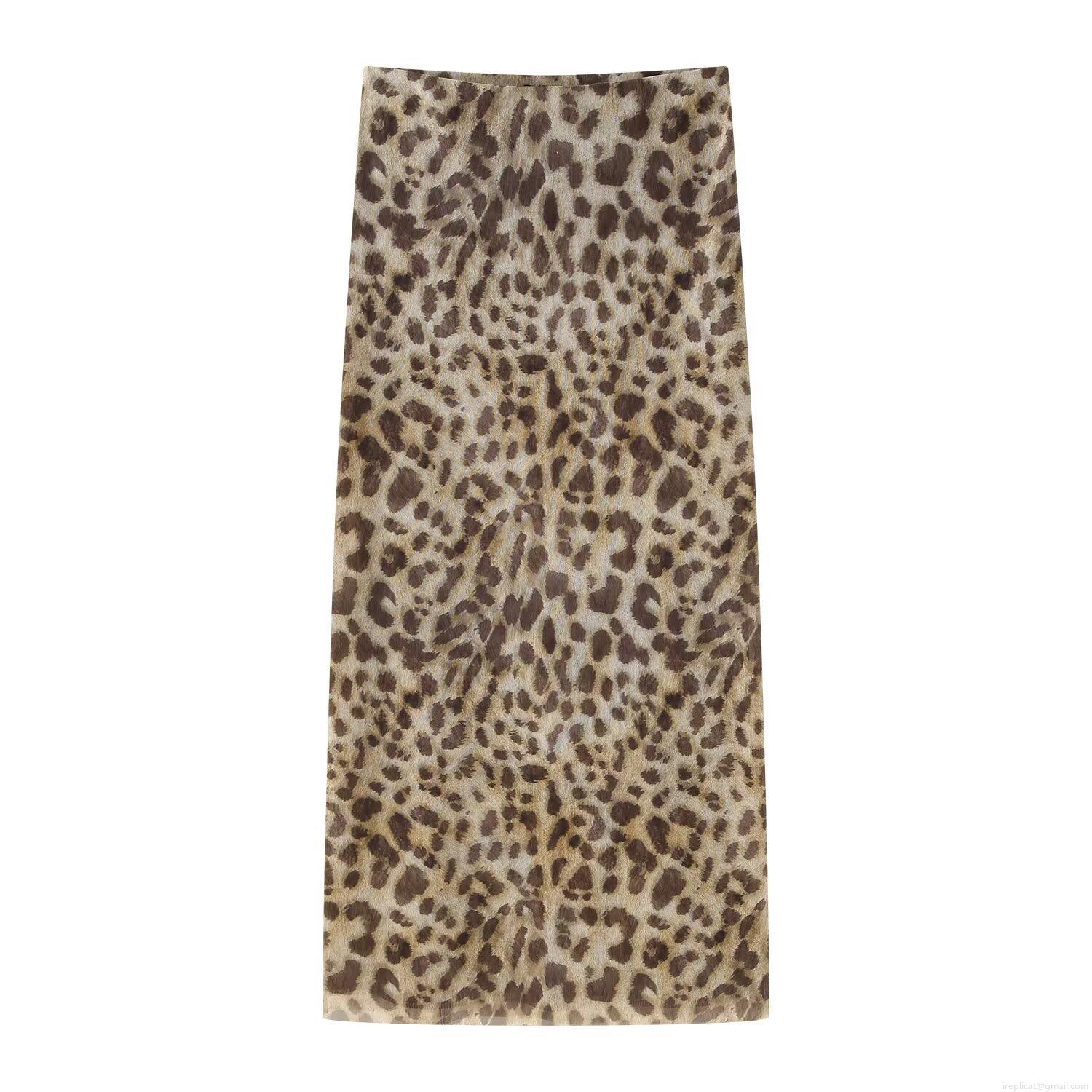 • Women's Leopard Print Mesh Two Piece Set Ruched Halter Tube Top And Midi Pencil Skirt Summer Streetwear Clubwear Party Outfits