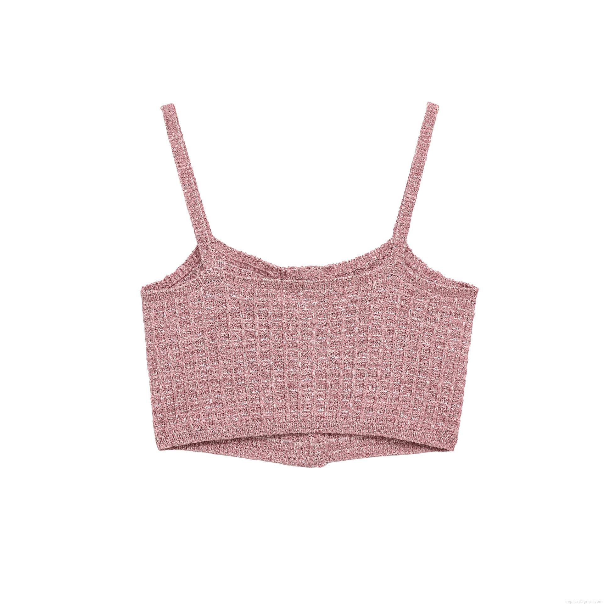 • Women's Pink Textured Knit Two-Piece Set Retro Gold Button Crop Cami Top High Waist Mini Skirt Outfits For Women Party Daily Casual Streetwear Bodycon Clubwear
