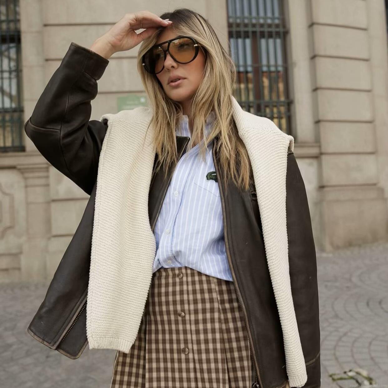 • Women's Preppy Plaid 2-Piece Set Sleeveless V-Neck Button Up Vest Top And Pleated Mini Skirt Academic Style Polyester Casual Outfit