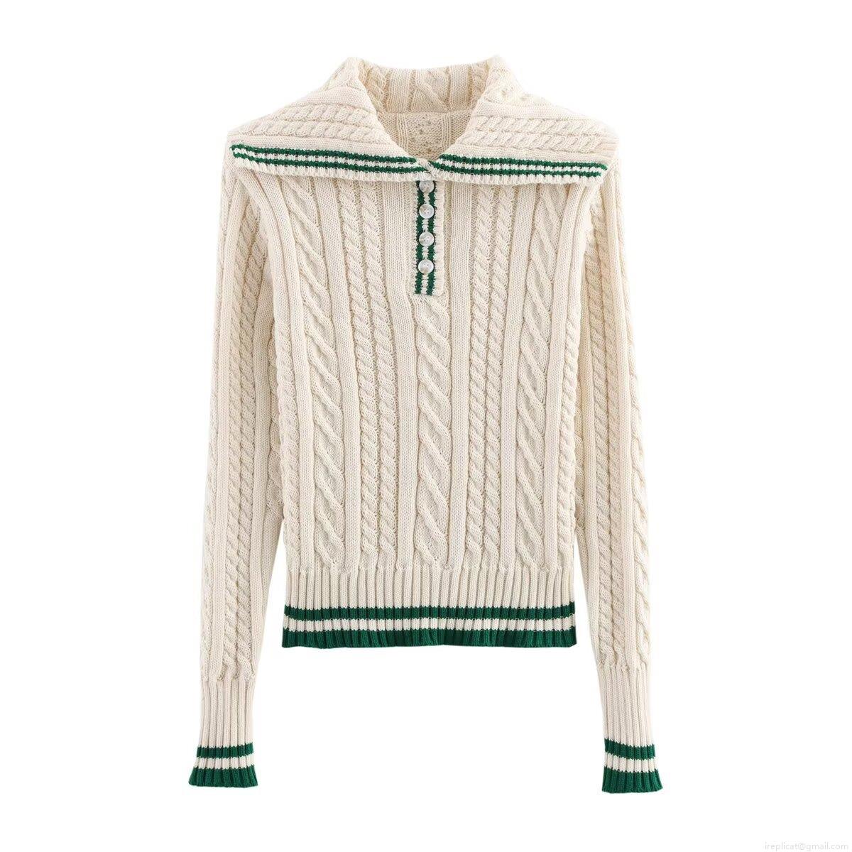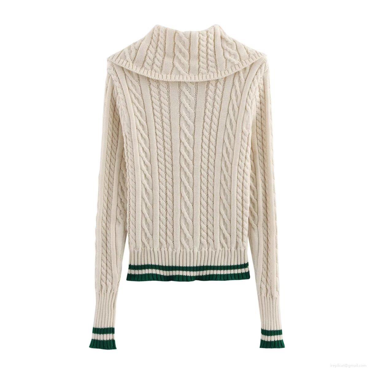 Stripe, Twisted Flower, Zipper, Color-blocked Stripes, Pleats, Lapel, Cable Knit Pattern