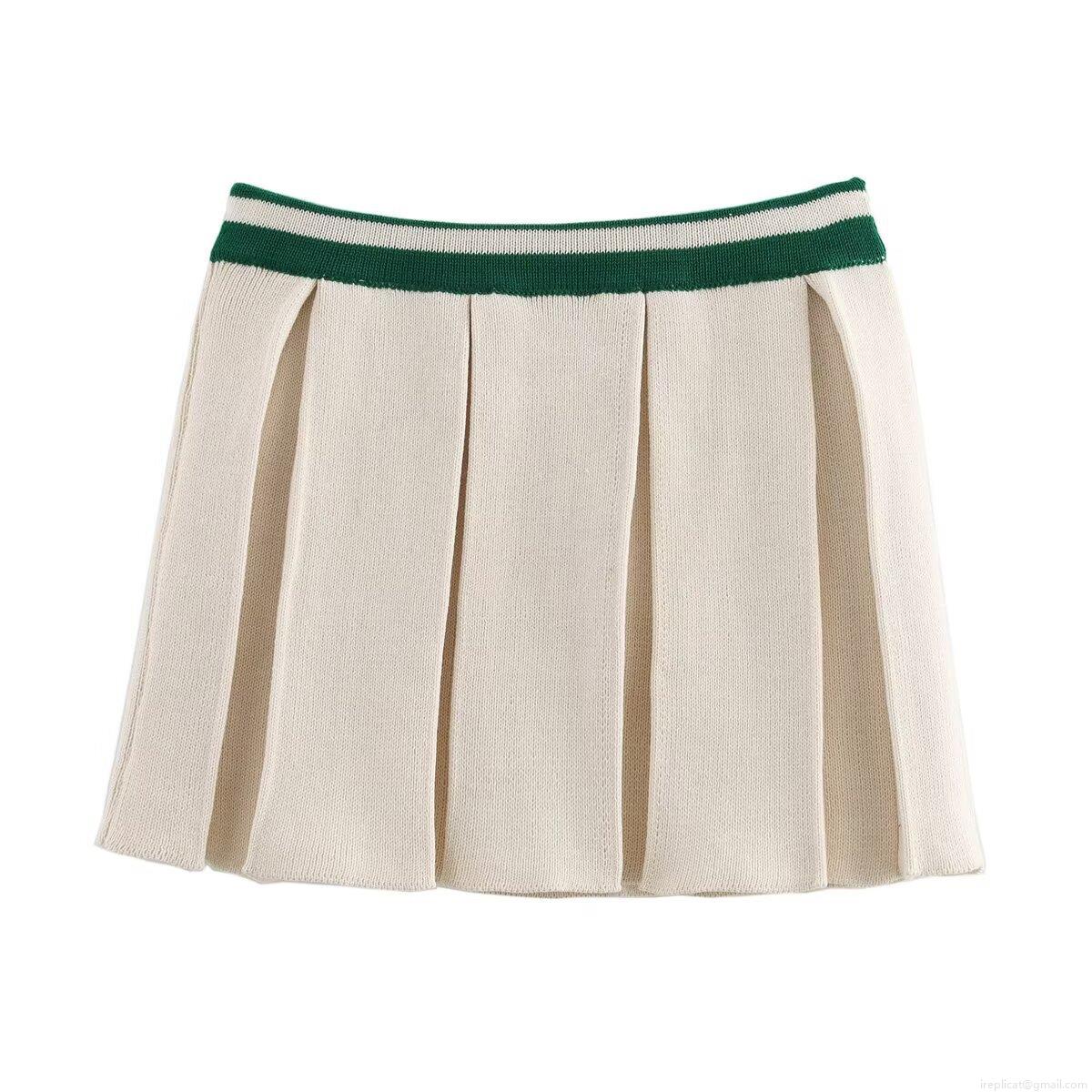 • Women's Preppy Style 2 Piece Knit Skirt Set Contrast Stripe Trim Long Sleeve Lapel Cable Knit Sweater And Mini Pleated Skirt Outfits