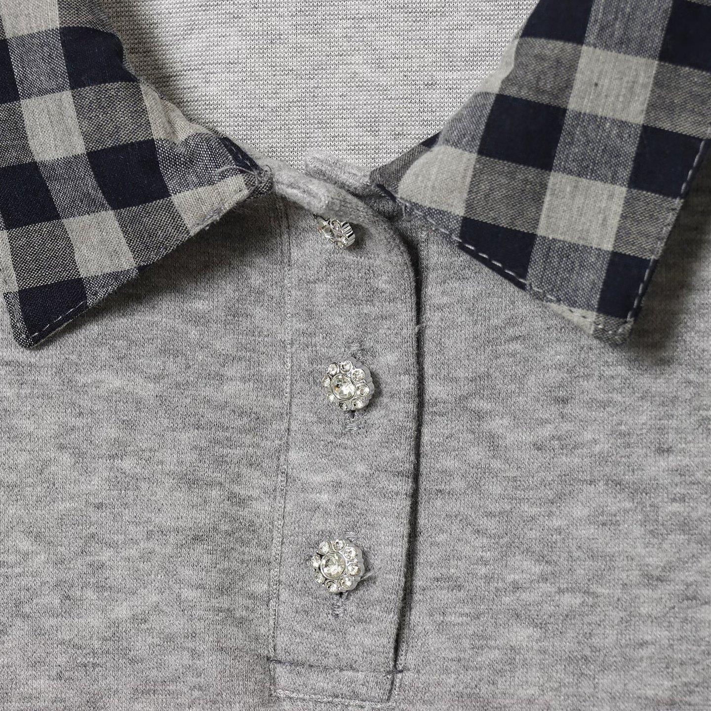 Splice, Checkered Pattern, Drawstring, Forked, Polo Collar, Rhinestone Buttons