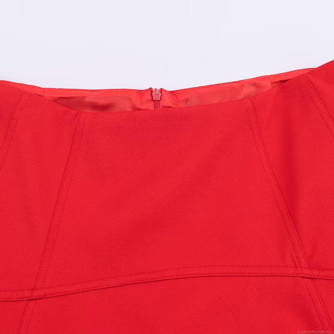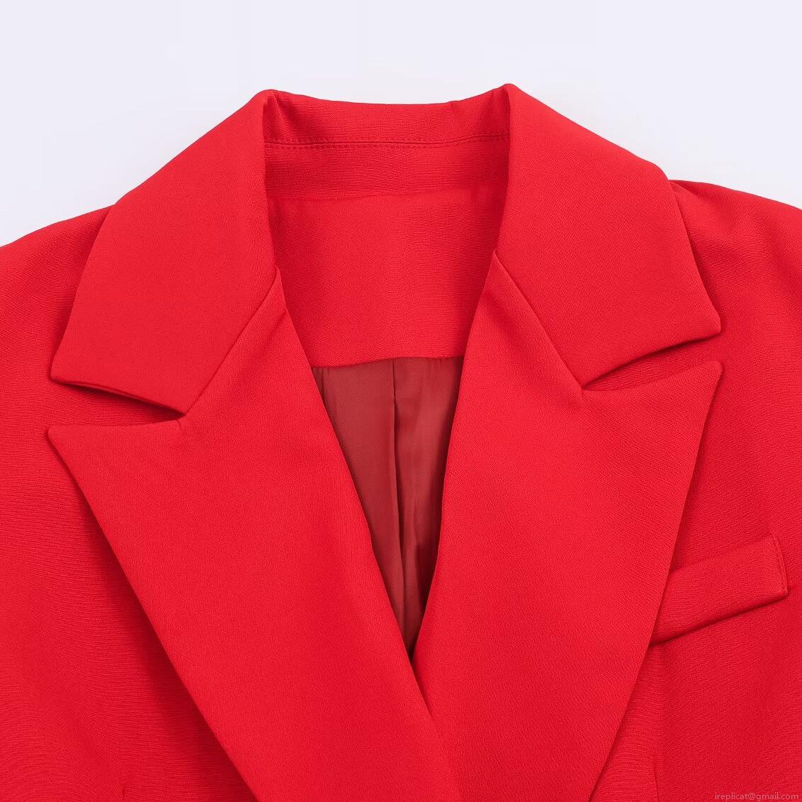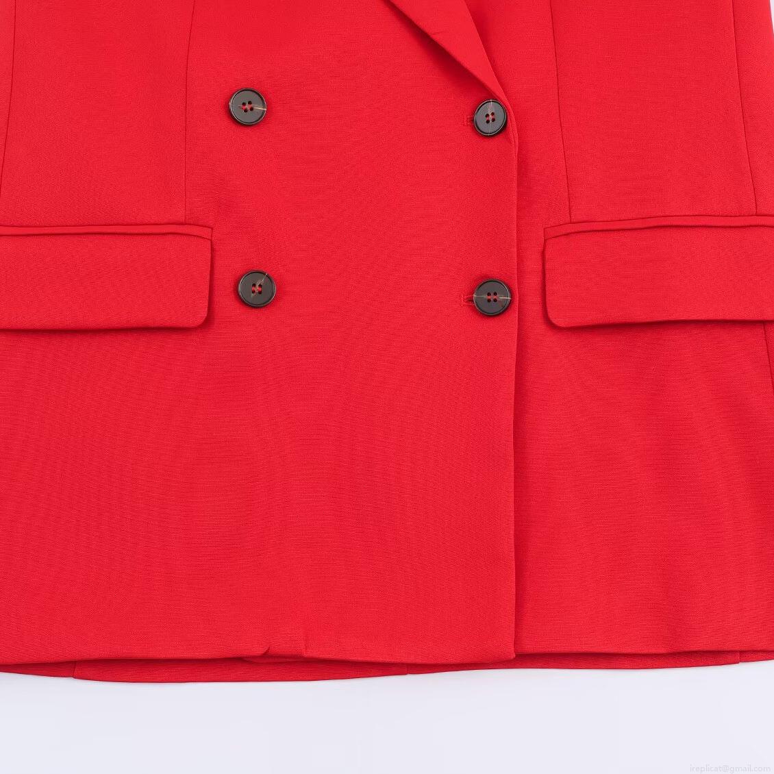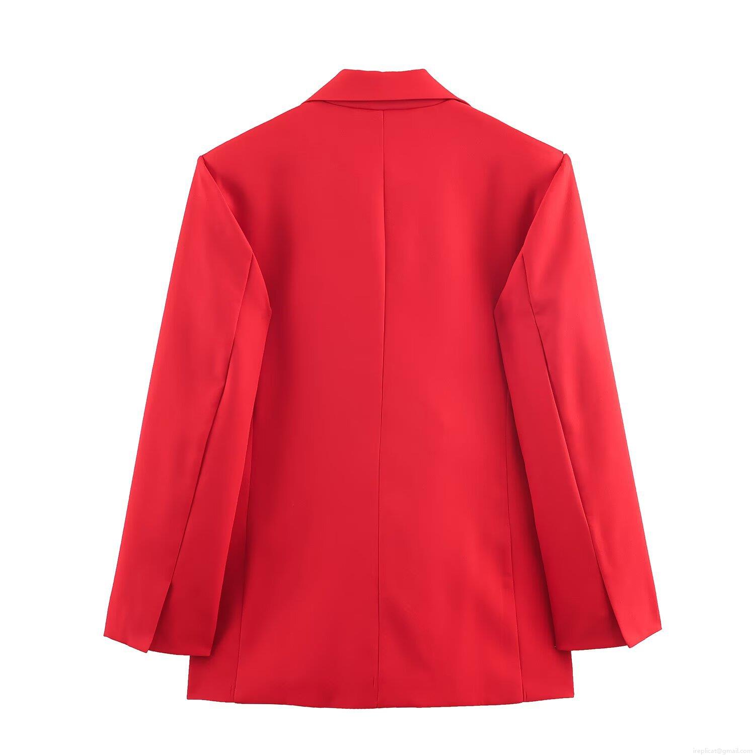 • Women's Professional Red 2-Piece Suit Set Elegant Double-Breasted Blazer Jacket and High Waist Midi A-Line Skirt Office Lady Commuting Outfits