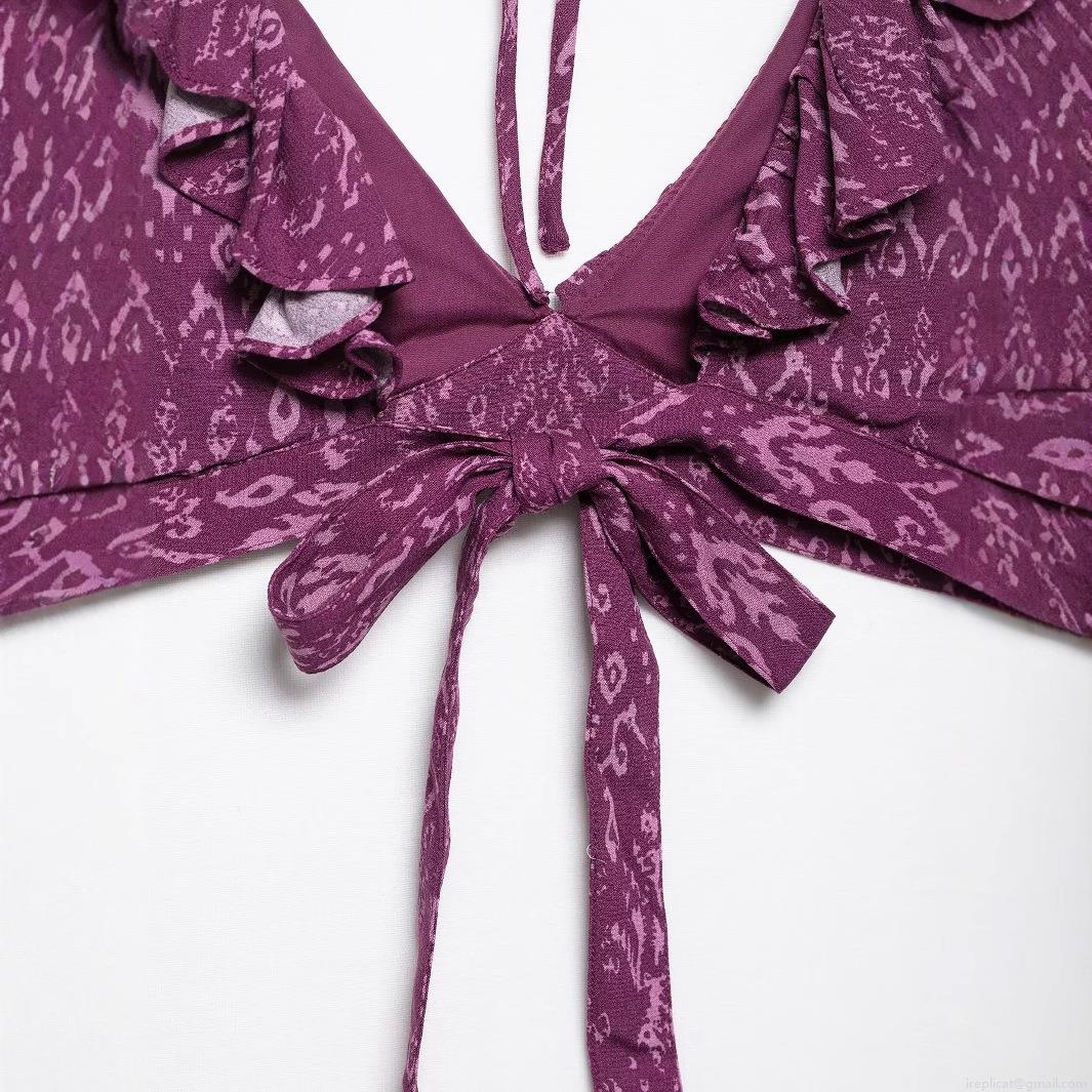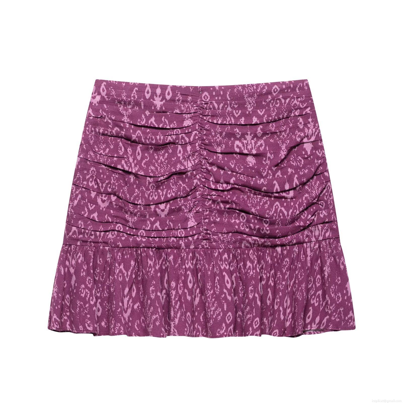 • Women's Purple Abstract Print 2-Piece Skirt Set 100% Polyester Ruffled Sleeveless Crop Top And Ruched Mini Skirt For Summer Streetwear Party Fashion
