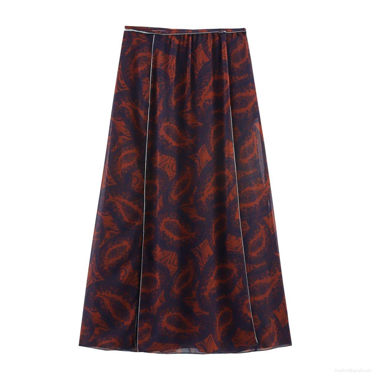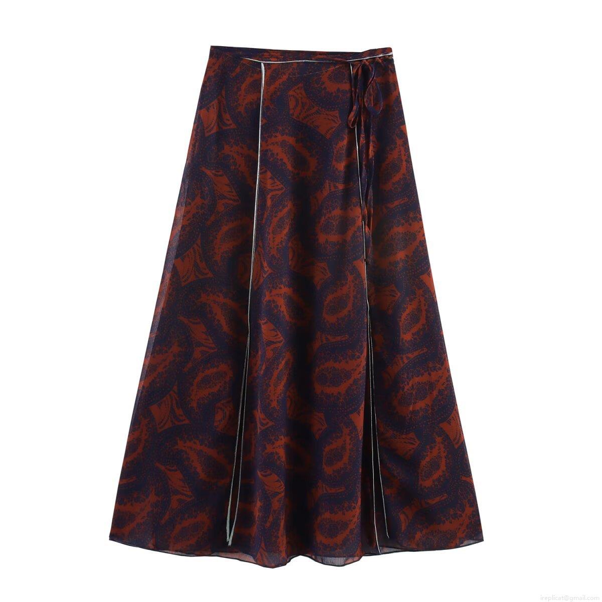 • Women's Retro Paisley Print Chiffon Top and Midi Skirt Set Casual Bohemian Lantern Long Sleeve Round Neck Blouse with High Waist A-Line Tie Side Skirt Streetwear for Summer Vacation
