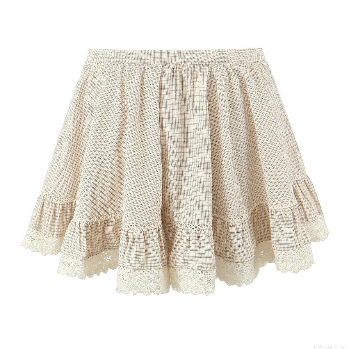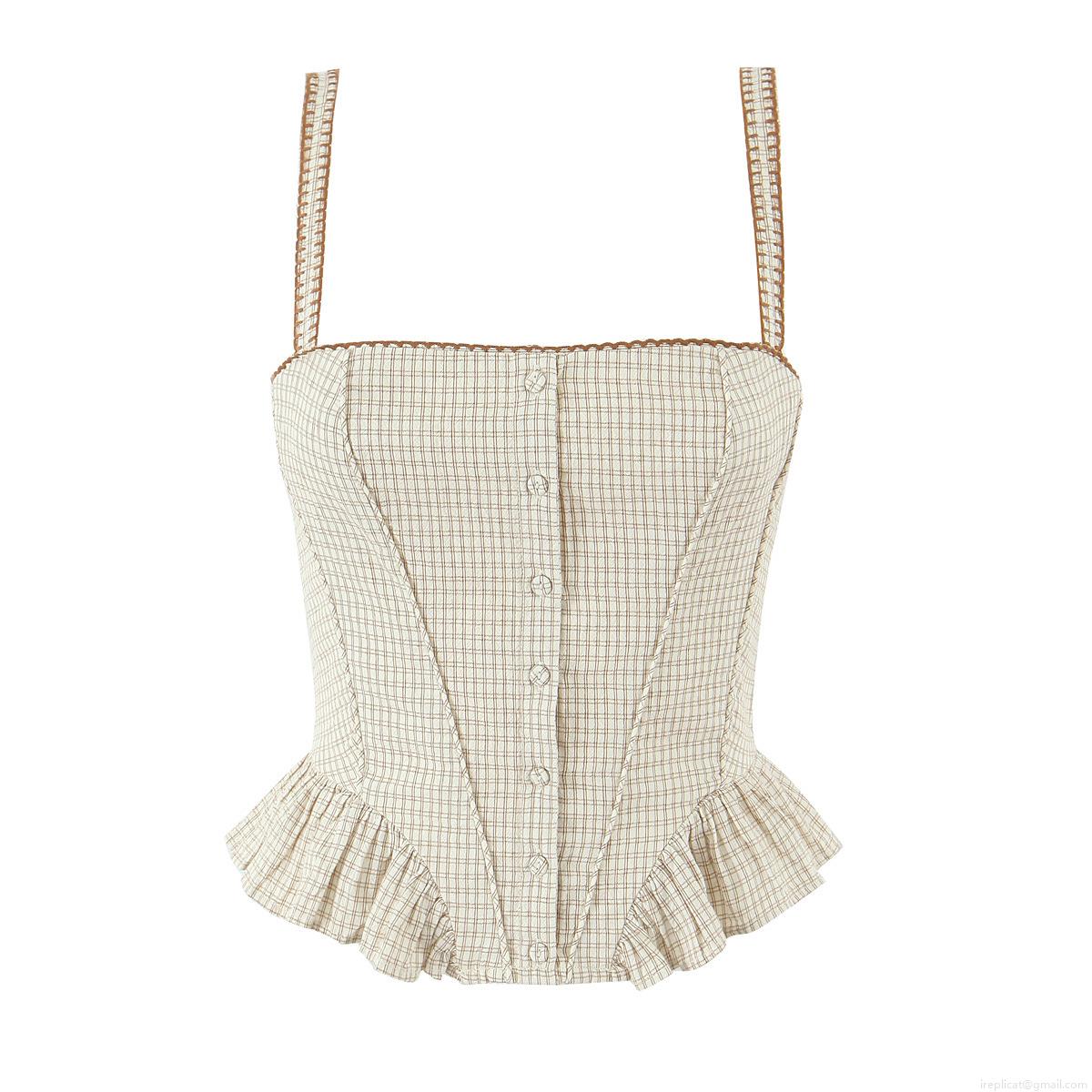 • Women's Retro Plaid Two Piece Set 100% Cotton Lace Trim Camisole Top And Ruffled Mini Skirt Smocked Back Summer Outfits For Vacation Beach Streetwear