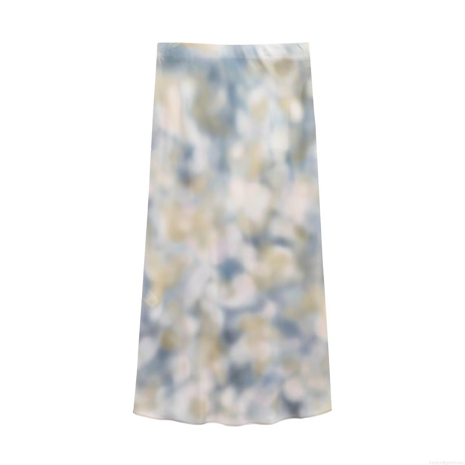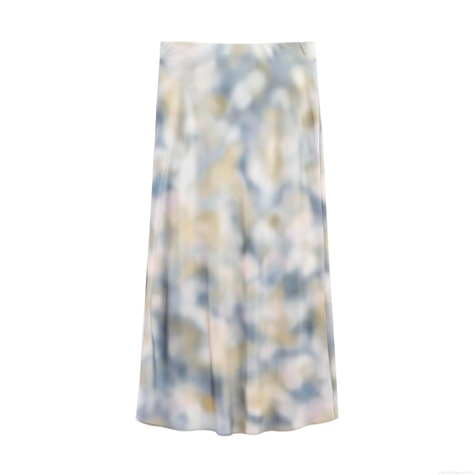 Women's Satin Polyester Tie-dye Shirt And Midi Skirt Two Piece Set Casual Streetwear Outfits Long Sleeve Button Up Blouse High Waist Skirt