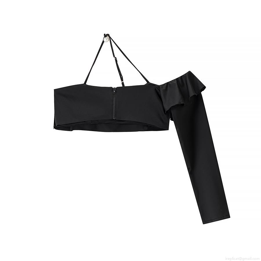 Solid Color, Asymmetric, Ruffles, Straps, Side Fork, Pearl Decoration