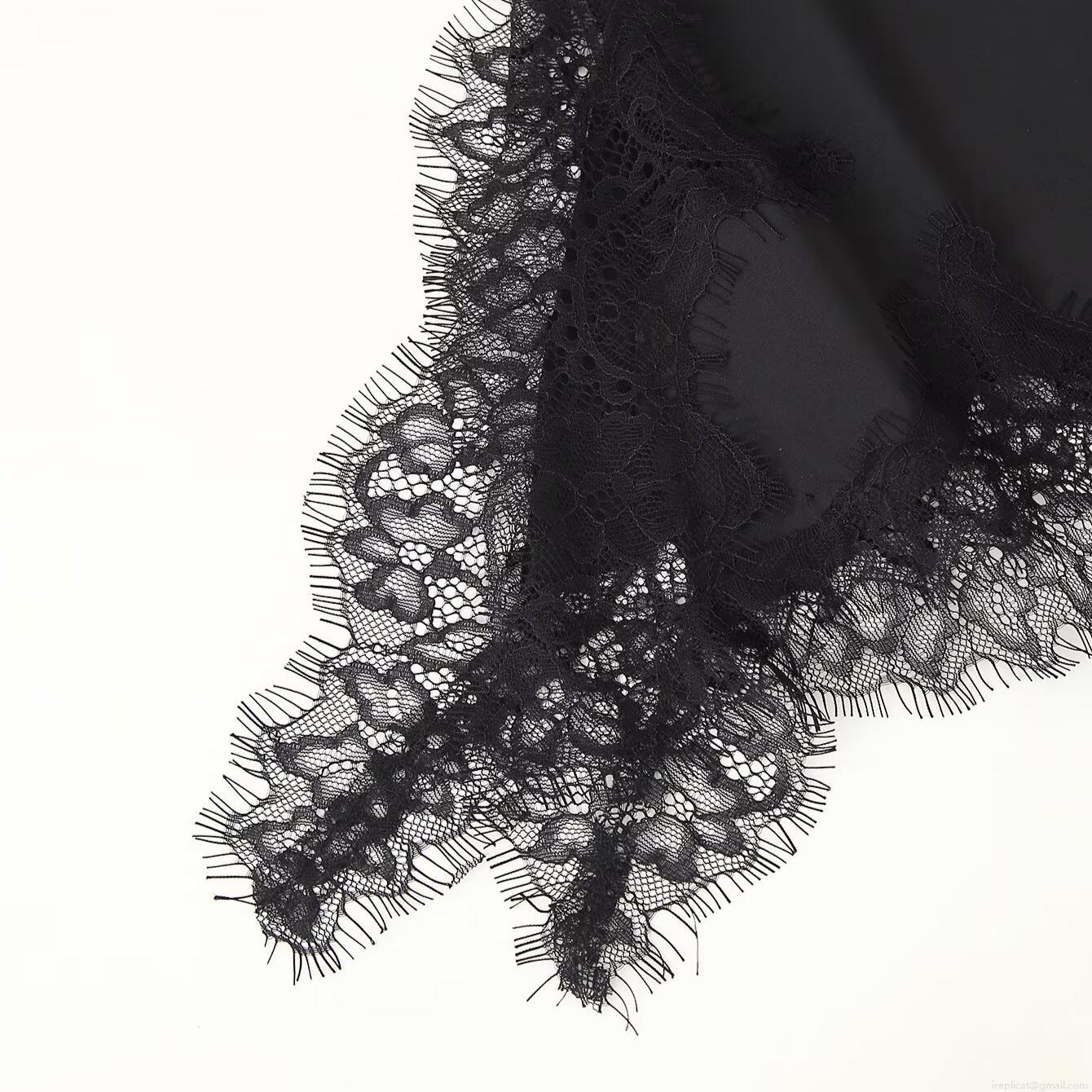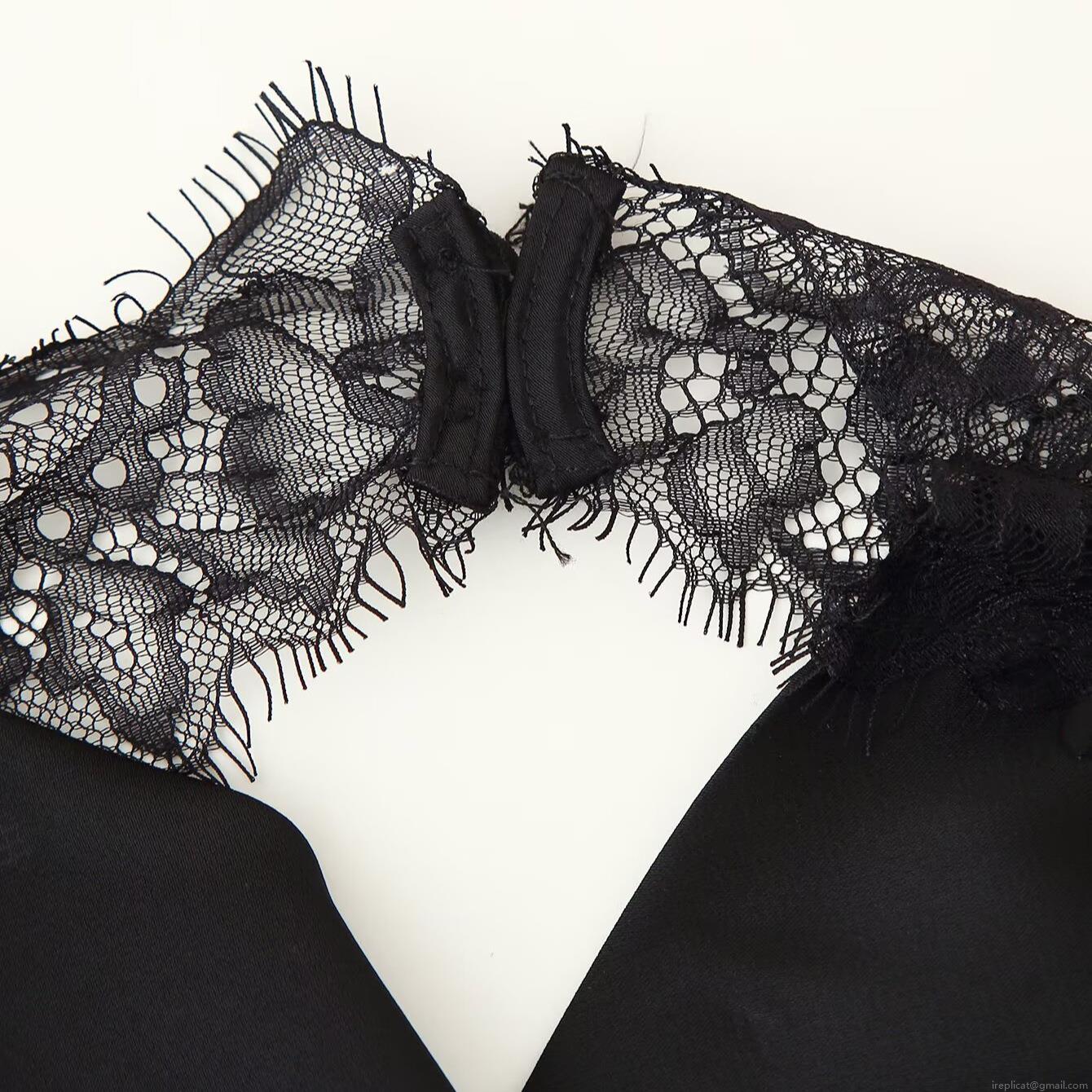 • Women's Sexy Black Halter Lace Trim Top and Midi Skirt Set Elegant Satin Patchwork Sleeveless Backless Blouse and Asymmetric Hem Lace Skirt Two-Piece Outfit for Party Club Wear