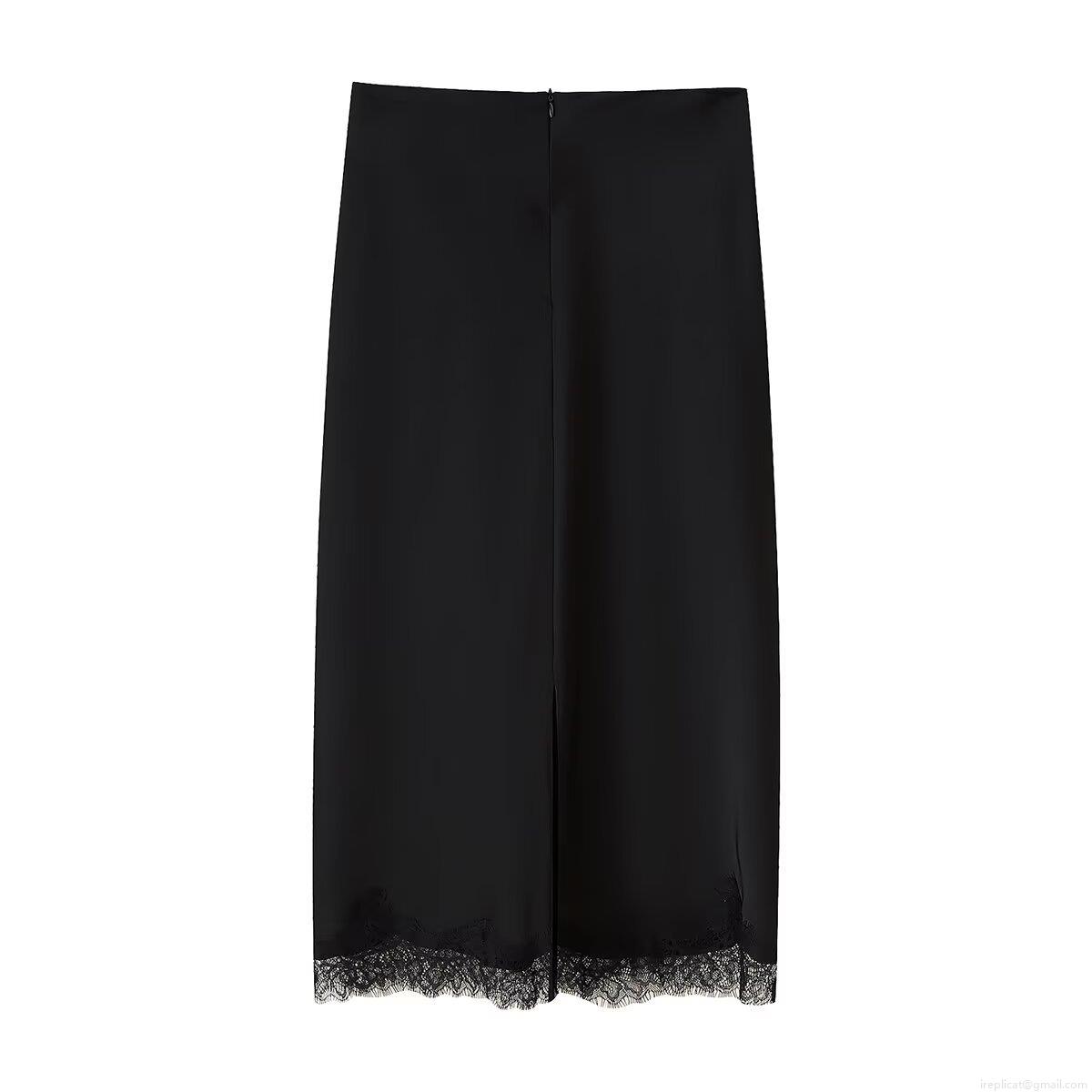 • Women's Sexy Black Satin Lace Halter Top And Skirt Set Two Piece Asymmetric Hem Backless Streetwear Party Clubwear Summer Sleeveless Outfit For Women