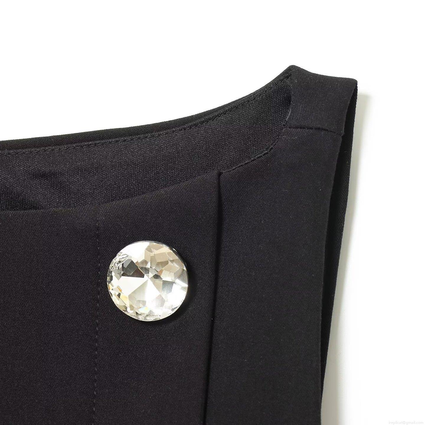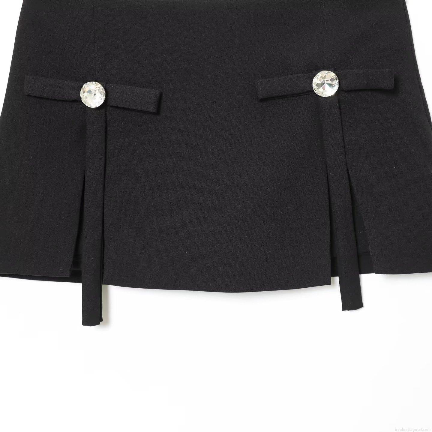 • Women's Sexy Black Two Piece Outfit Rhinestone Button Sleeveless Vest Top And Bowknot Mini Skirt Set Summer Party Clubwear Suit