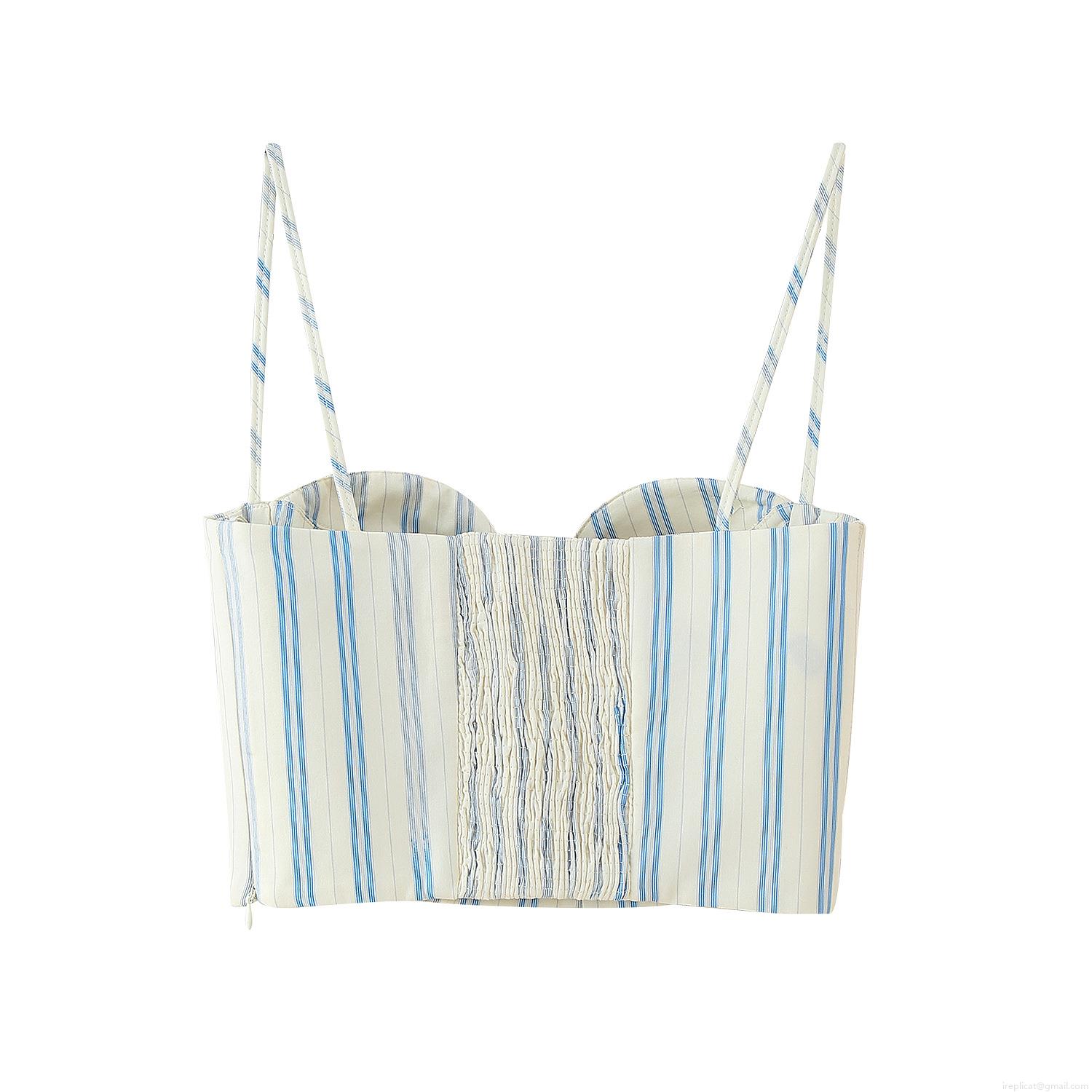 • Women's Sexy Blue White Vertical Stripe Two-Piece Set Bandeau Strappy Top And A-Line Mini Skirt With Green Graffiti Print Cotton Blend Casual Summer Beach Outfit Streetwear