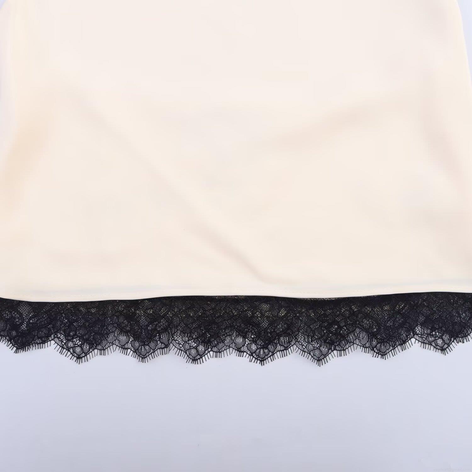 Solid Color, Lace, Side Fork, Satin Finish, Neckband Design, Eyelash Lace