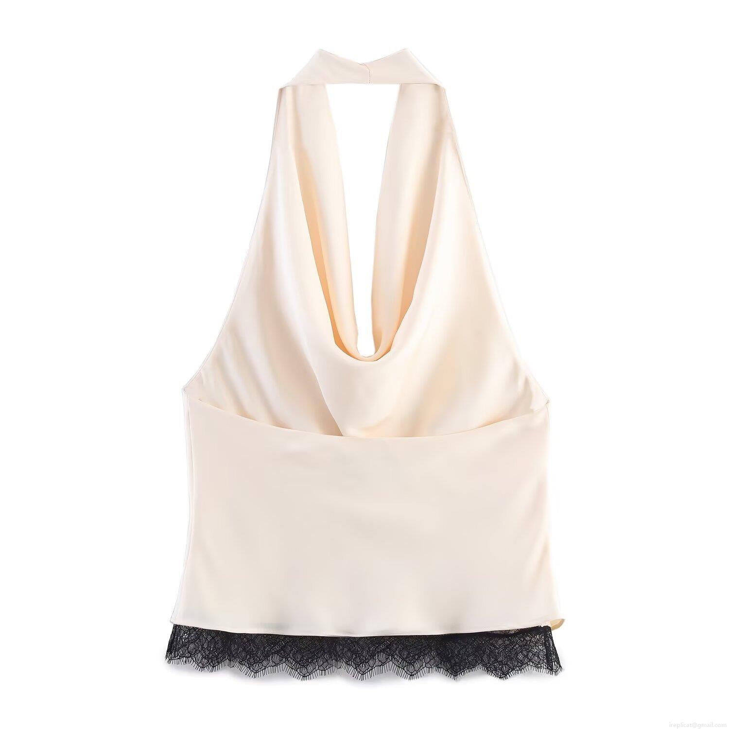• Women's Sexy Champagne Satin Halter Neck Top And Lace Trim Side Slit Midi Skirt Two Piece Set Elegant Party Club Night Out Summer Sleeveless Outfit