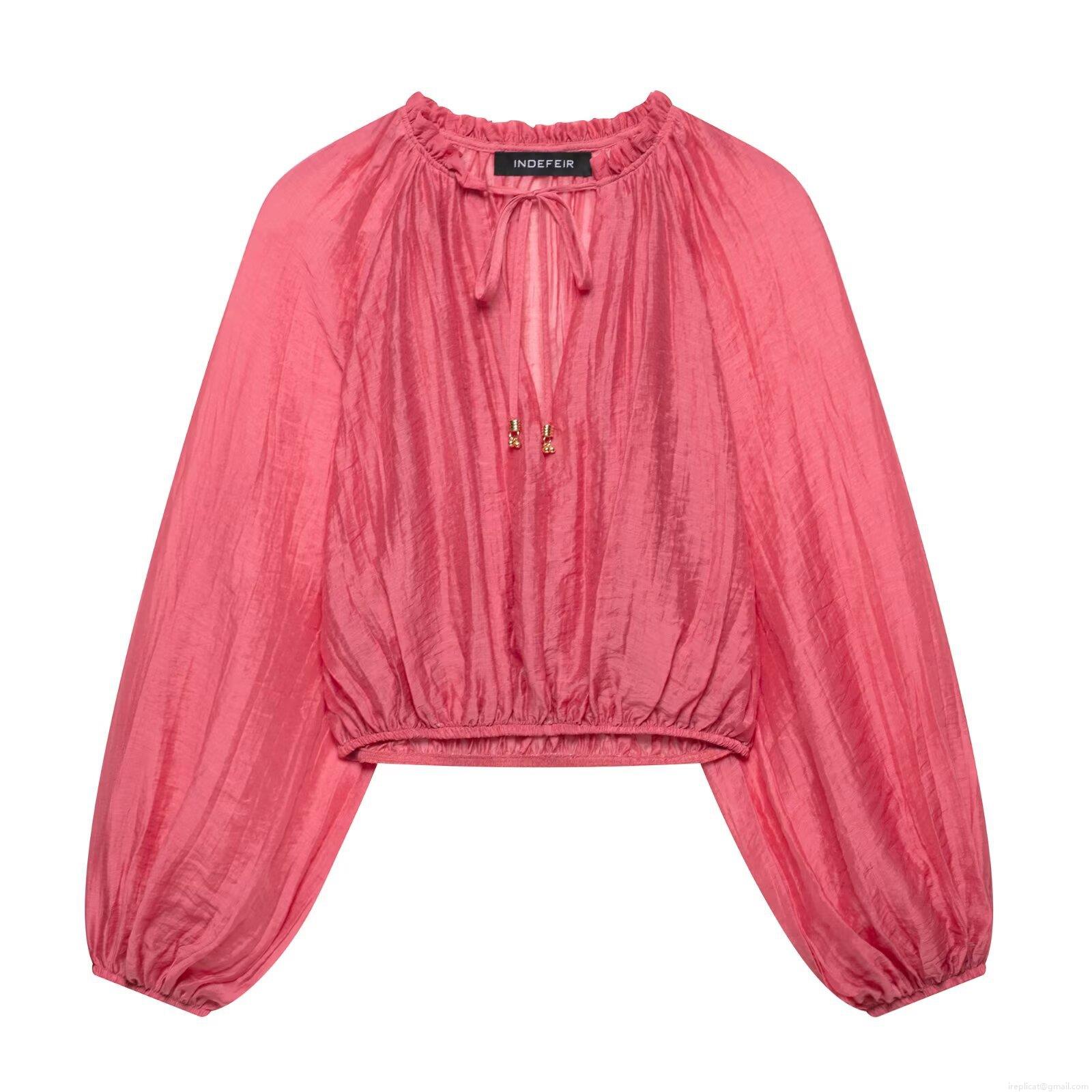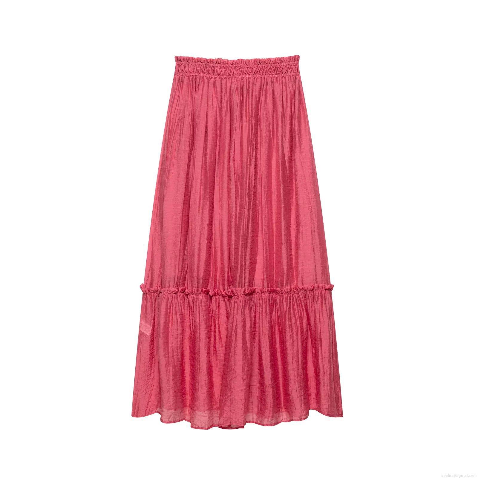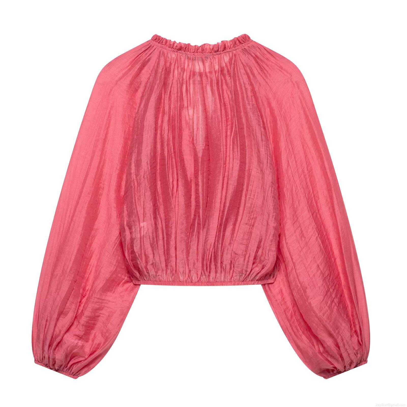 • Women's Sexy Crinkled Two Piece Set Long Sleeve Round Neck Cropped Top and High Waist Tiered Pleated Maxi Skirt Cotton Blend Streetwear Outfits