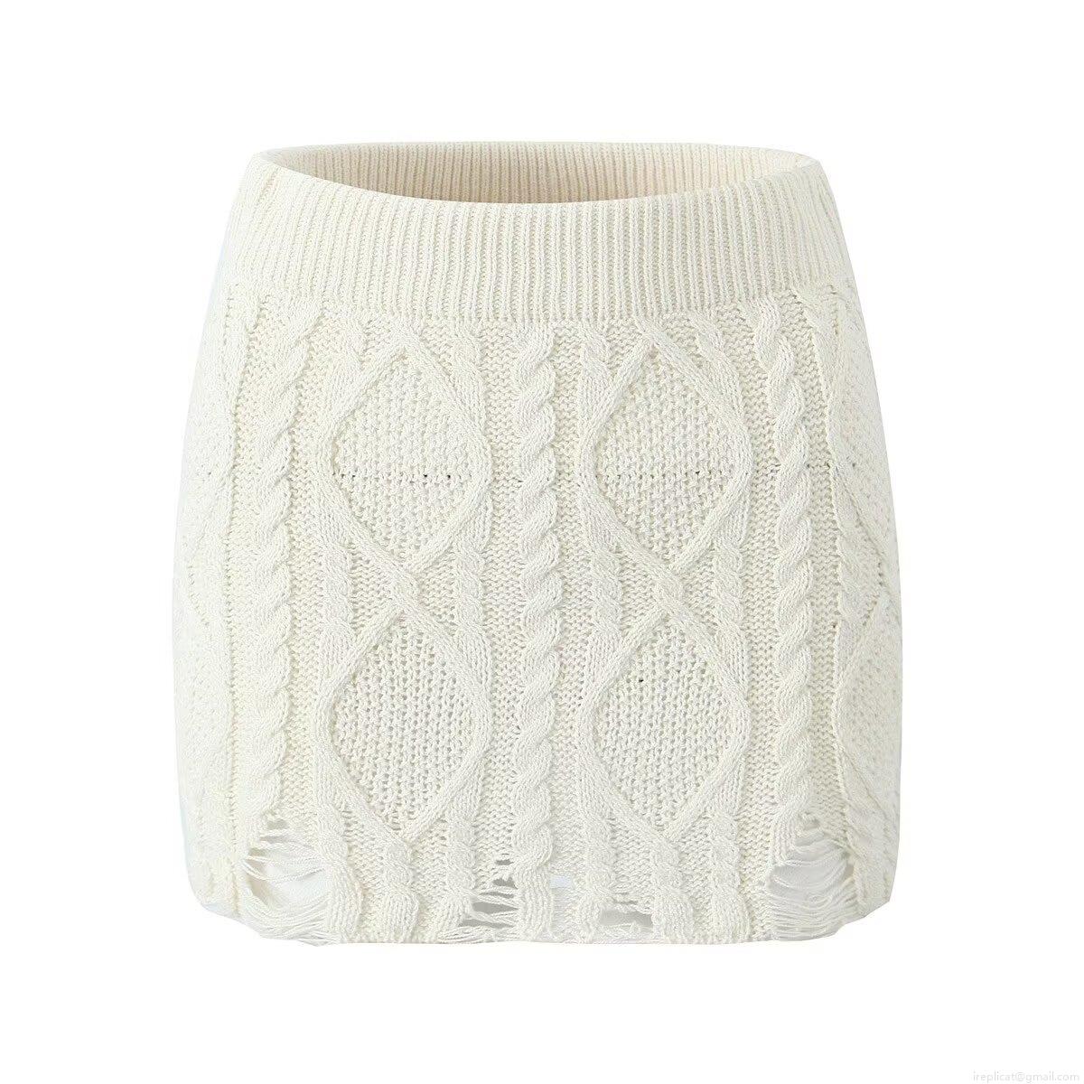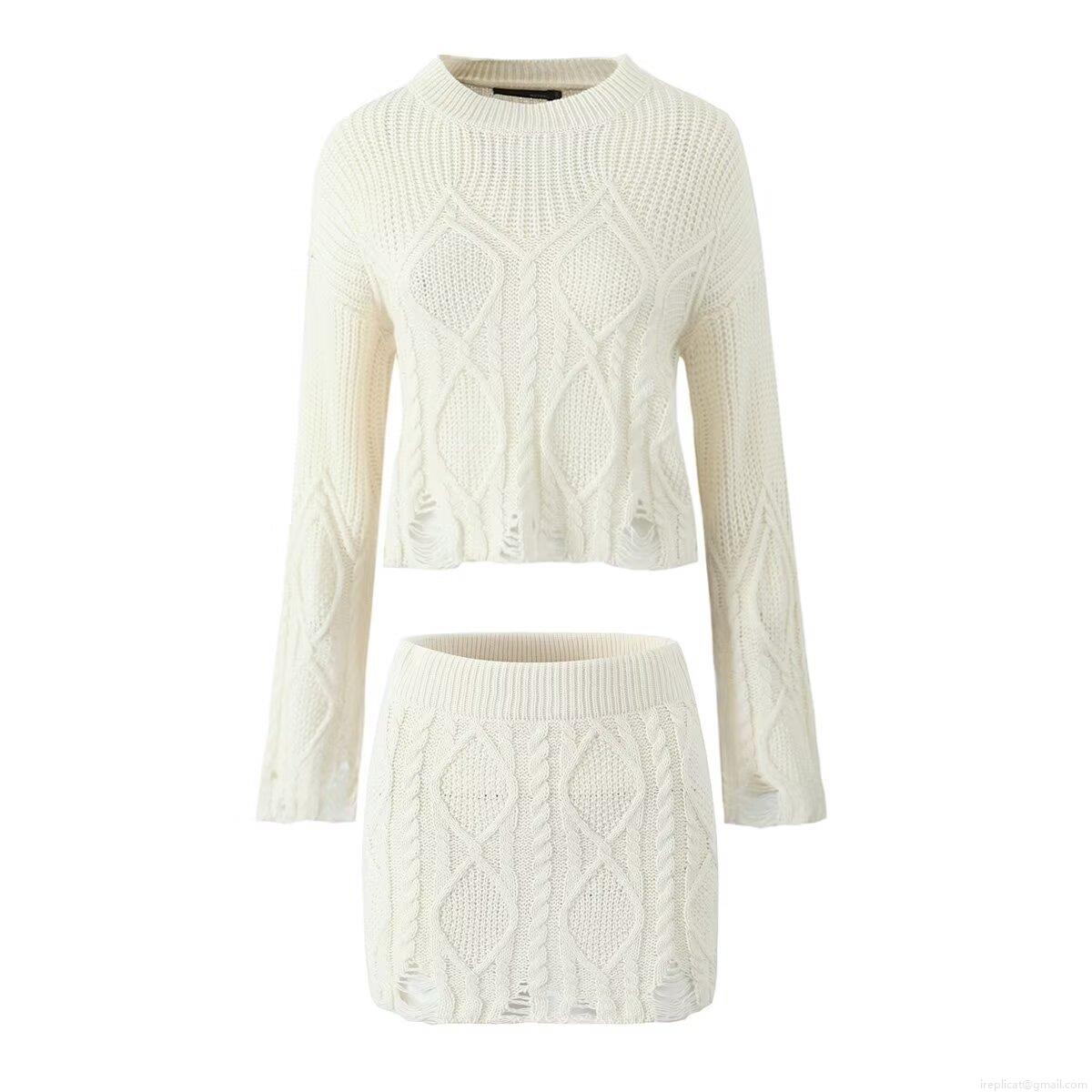 • Women's Sexy Distressed Cable Knit Two-Piece Set Hollow Out Cropped Sweater And Bodycon Mini Skirt Long Sleeve Streetwear Outfits For Autumn