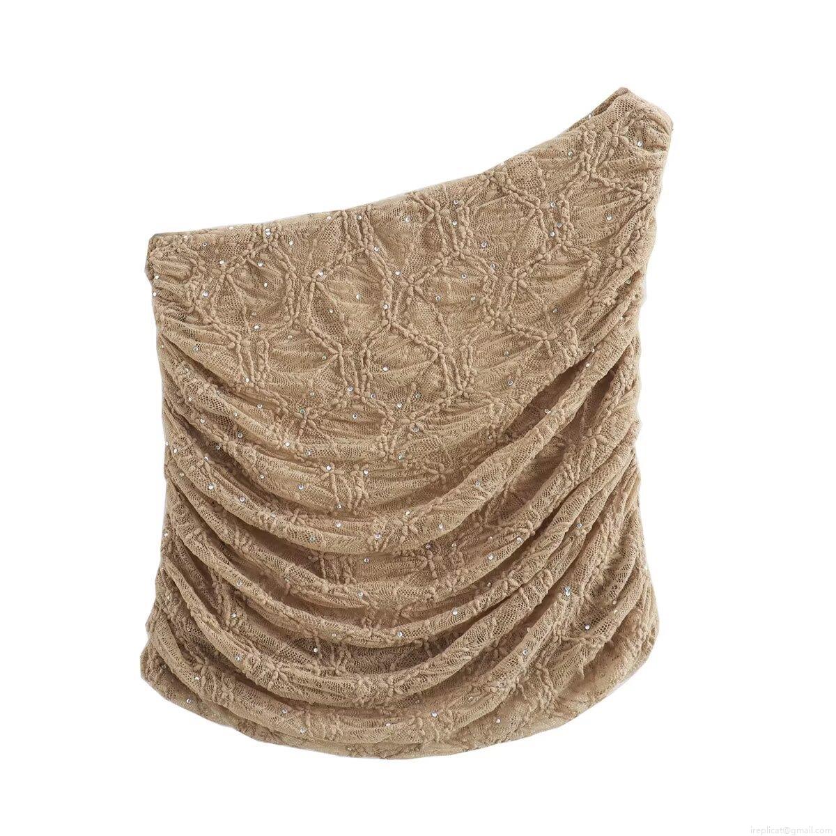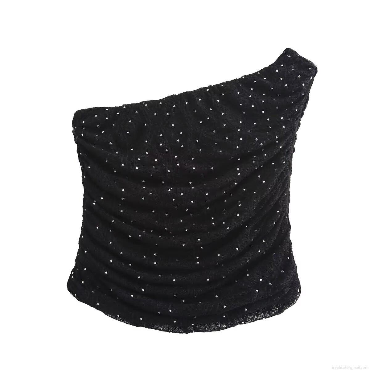 Solid Color, One Shoulder, Pleats, Hot Rhinestones, Wrinkling, Sloping Shoulders