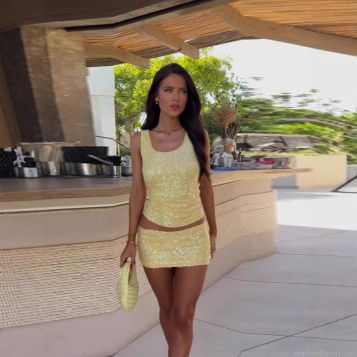 • Women's Sexy Sequin Two Piece Skirt Set Sleeveless Round Neck Crop Top And High Waist Mini Skirt Party Clubwear Outfits Summer Vacation Streetwear Clothing