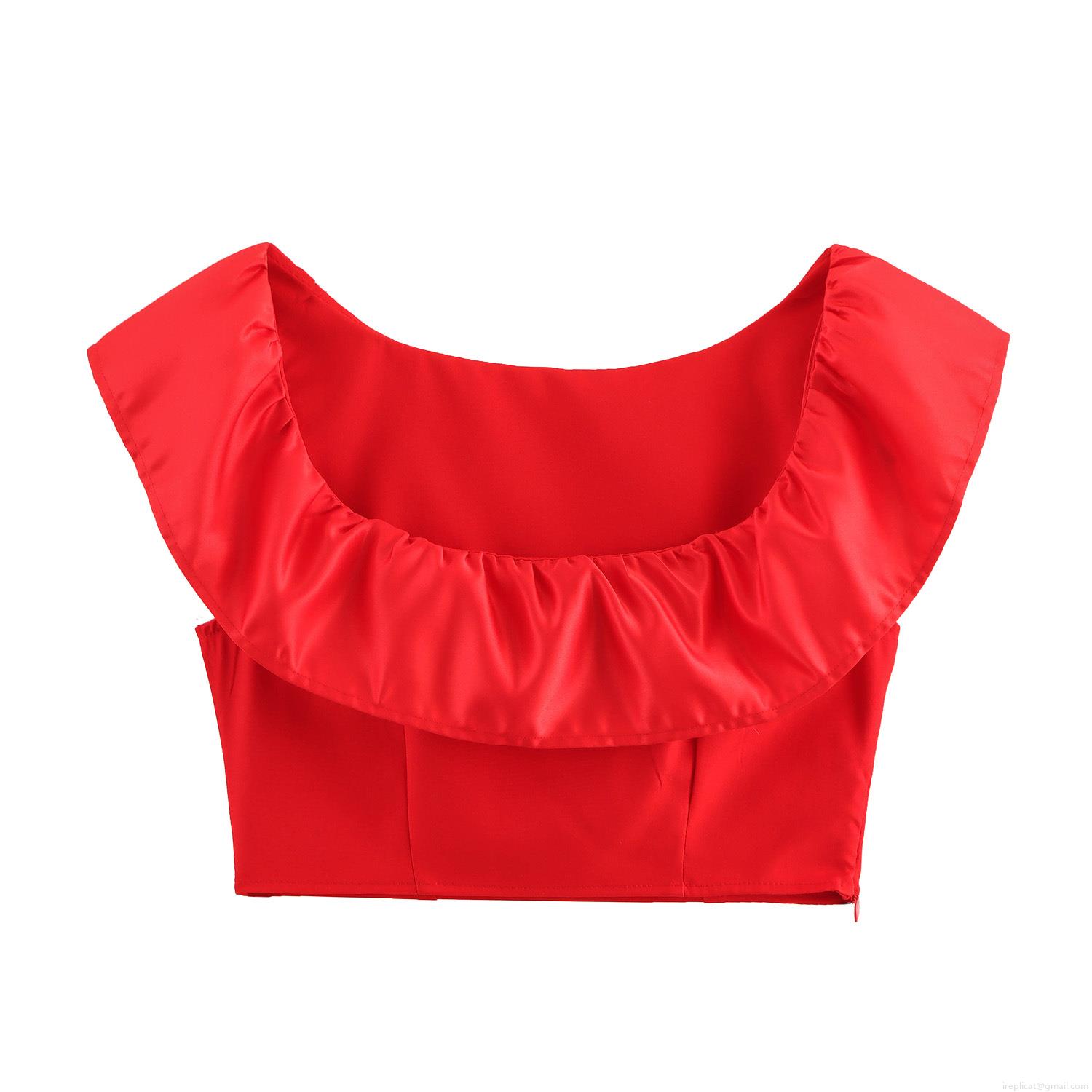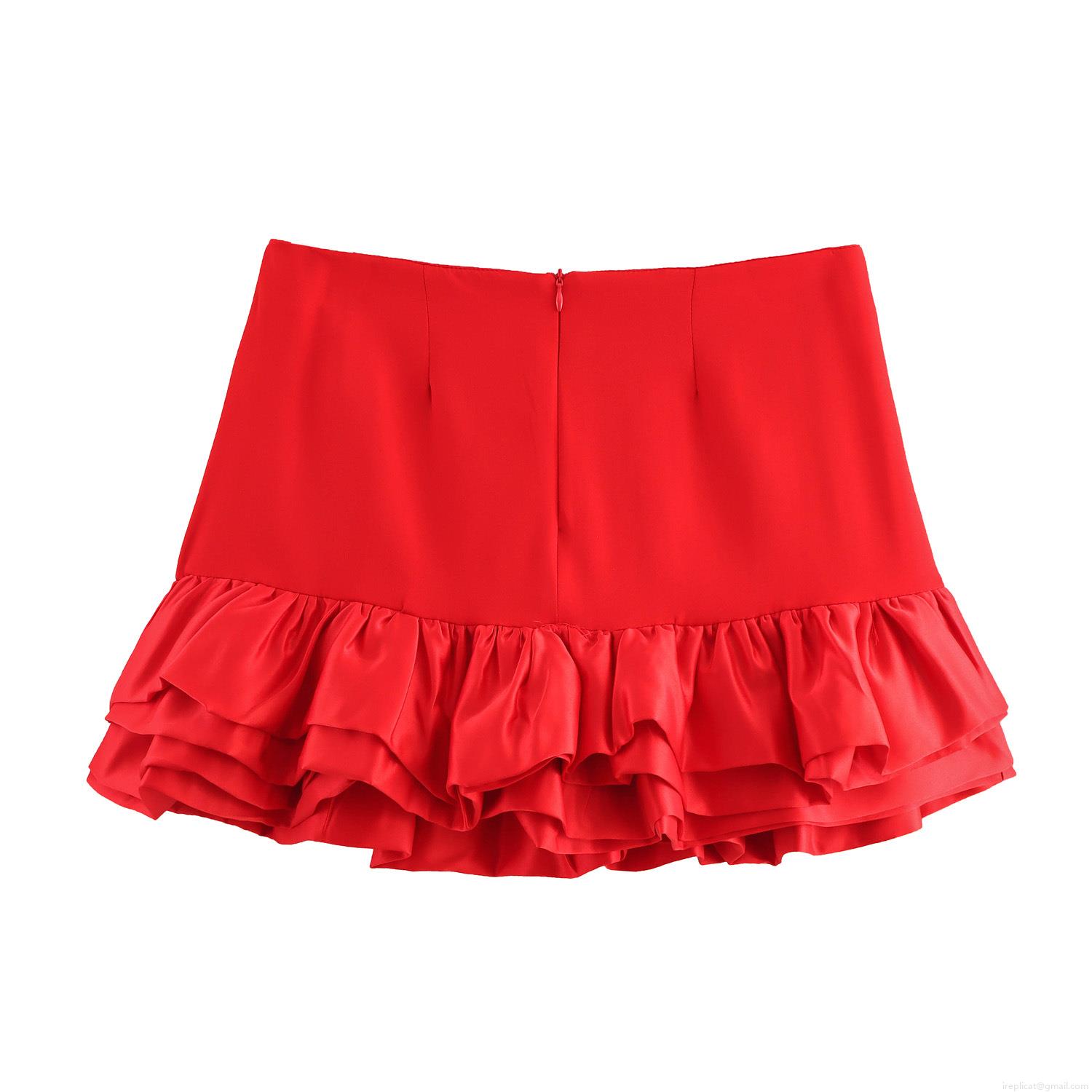 Women's Sexy Two Piece Skirt Set Polyester Satin Ruffle Crop Top Mini Skirt Spicy Girl Party Clubwear Summer Sleeveless Red Outfit