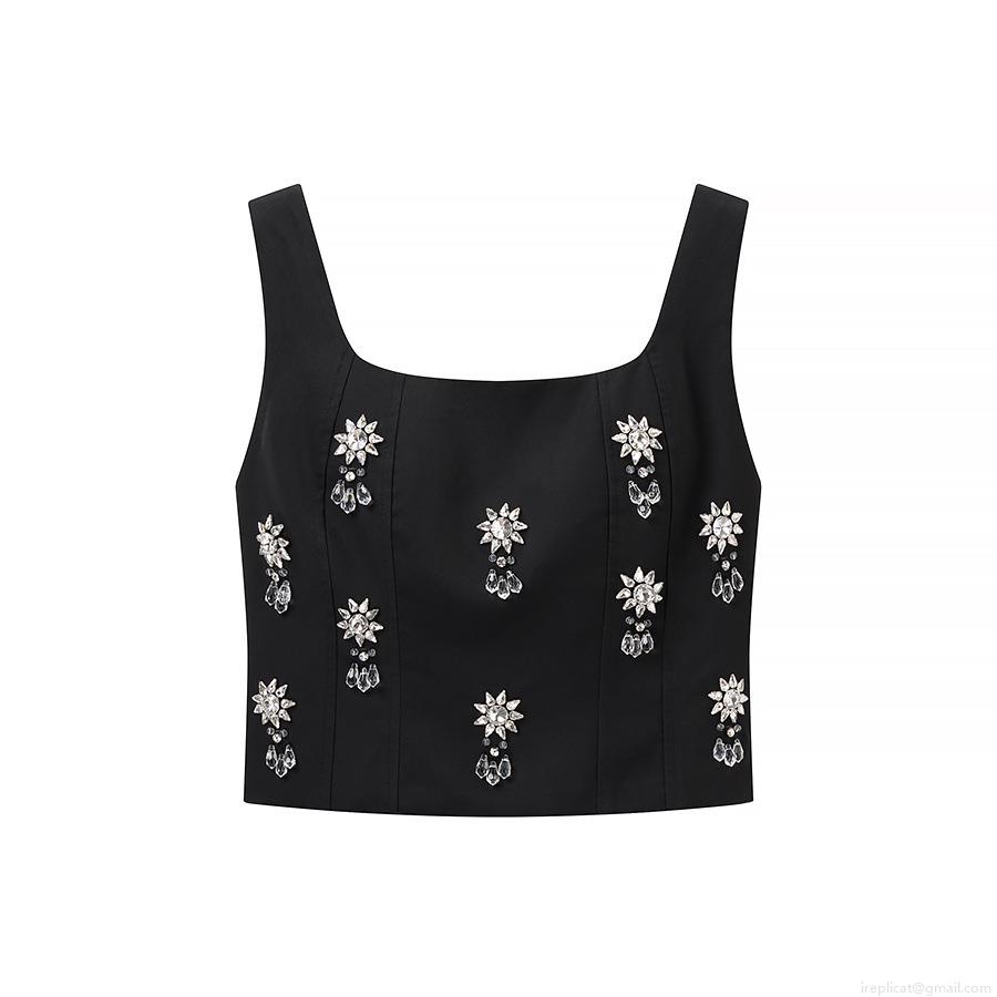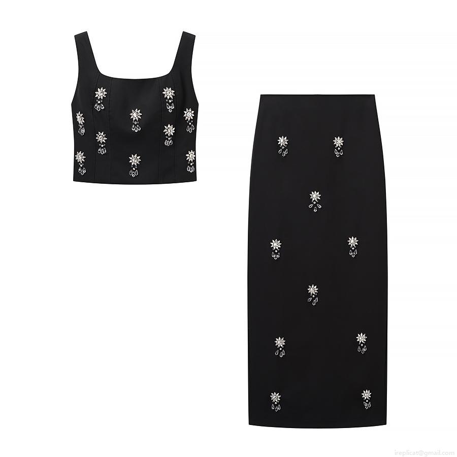 • Women's Sexy Two Piece Skirt Set Square Neck Rhinestone Flower Crop Cami Top and Long Column Skirt Set Elegant Evening Party Clubwear Outfit For Ladies