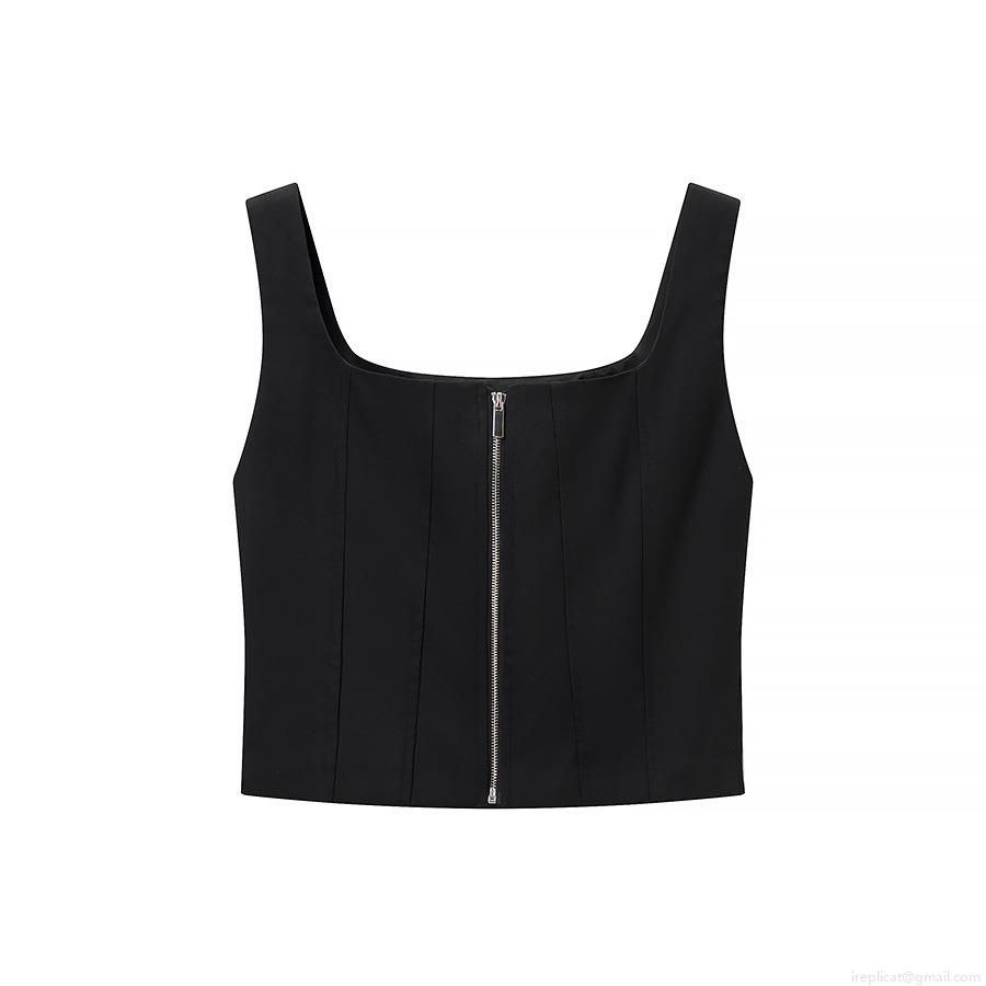 Solid Color, Splice, Floral, Diamond, Collage, Zipper, Exposing Belly Button, Fishbone Line