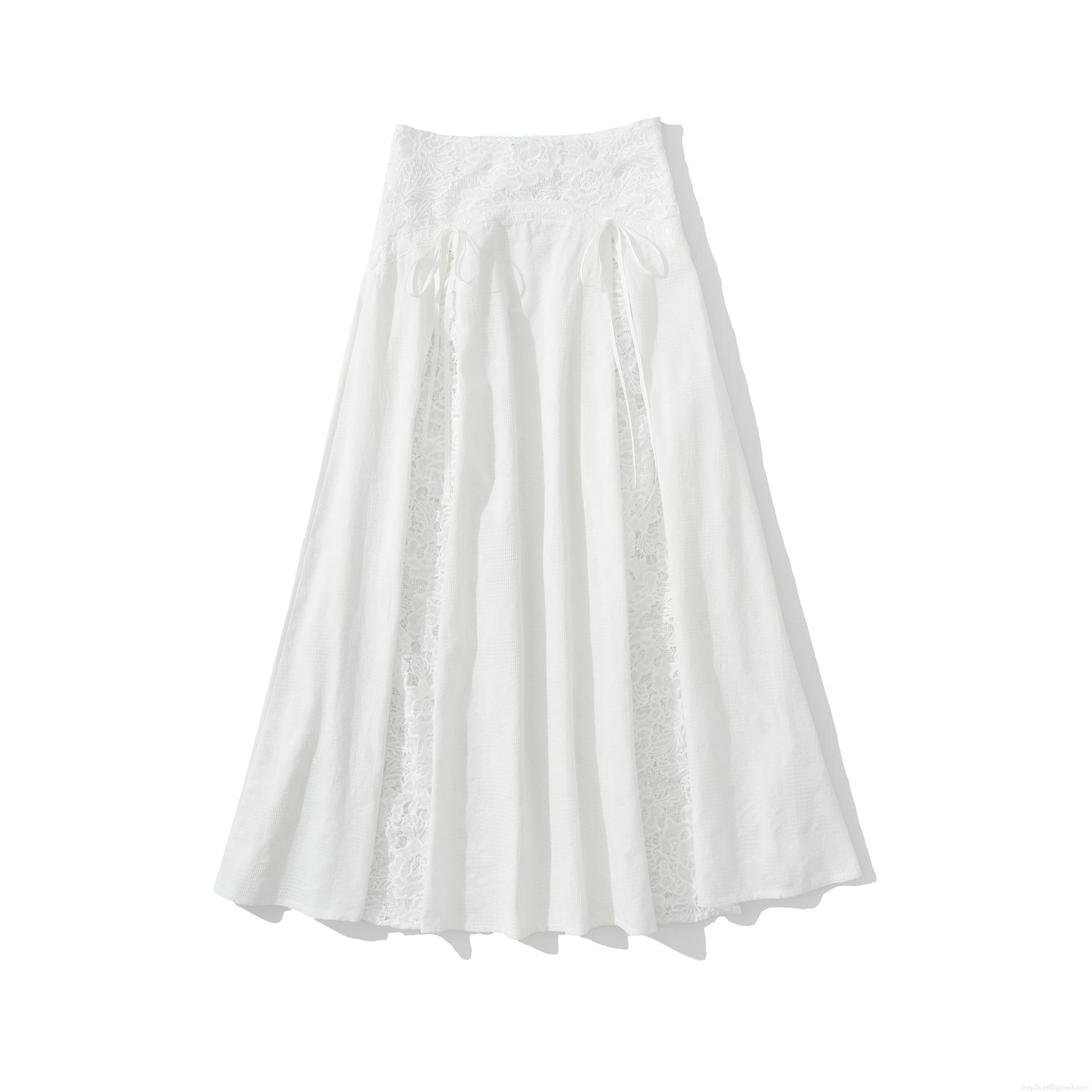 • Women's Sexy White Lace Patchwork Two Piece Skirt Set Off Shoulder Puff Sleeve Crop Top And High Waist Long Skirt Vacation Sweet Style Lady Outfits