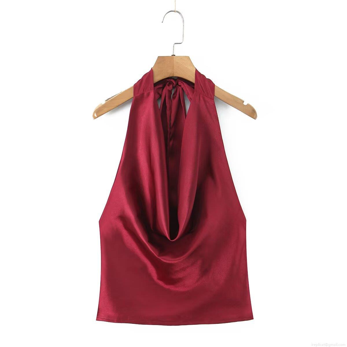 • Women's Sexy Wine Red Satin Two Piece Set Cowl Neck Halter Backless Top and Layered Petal Mini Skirt Elegant Party Clubwear Streetwear Outfit