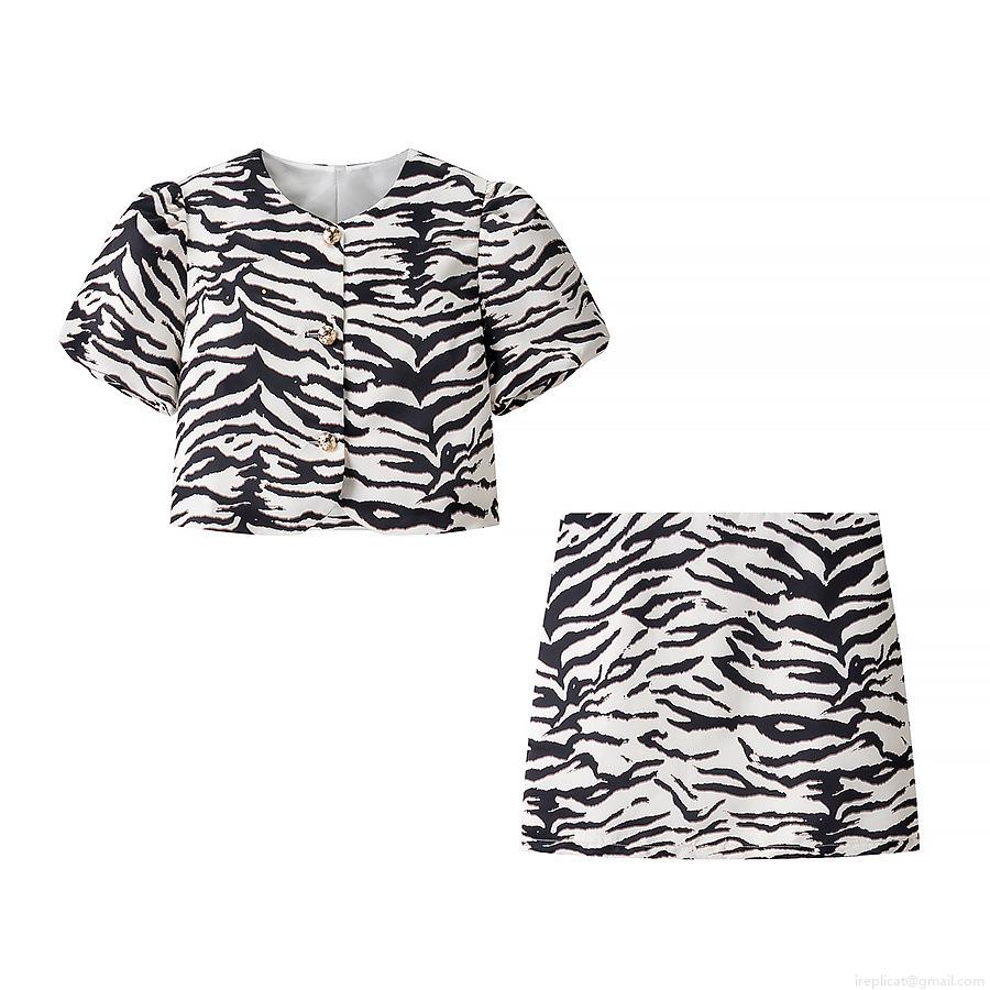 Women's Sexy Zebra Print Two Piece Set Polyester Blend Short Sleeve Bubble Sleeve Top With Golden Buttons A-Line Mini Skirt Streetwear Summer Outfit