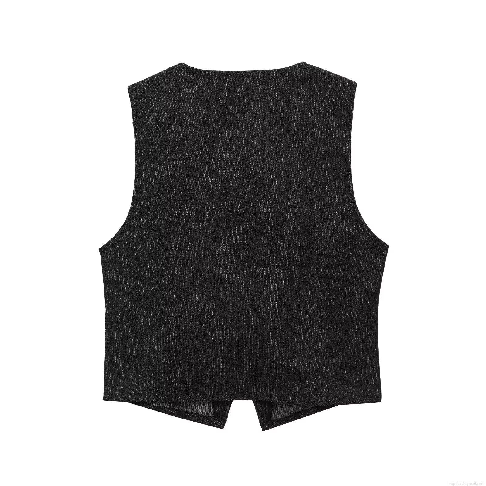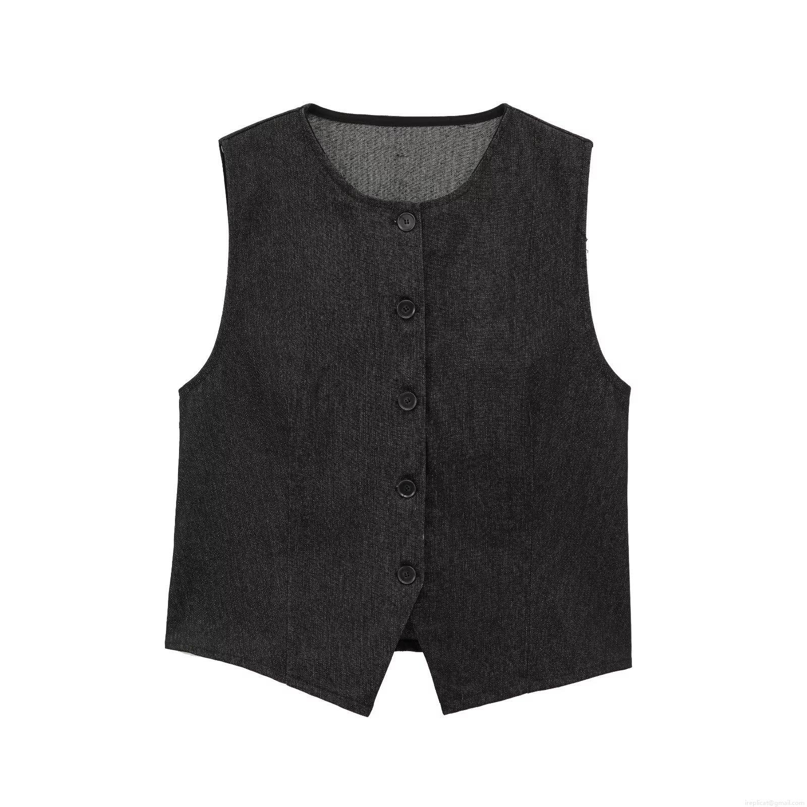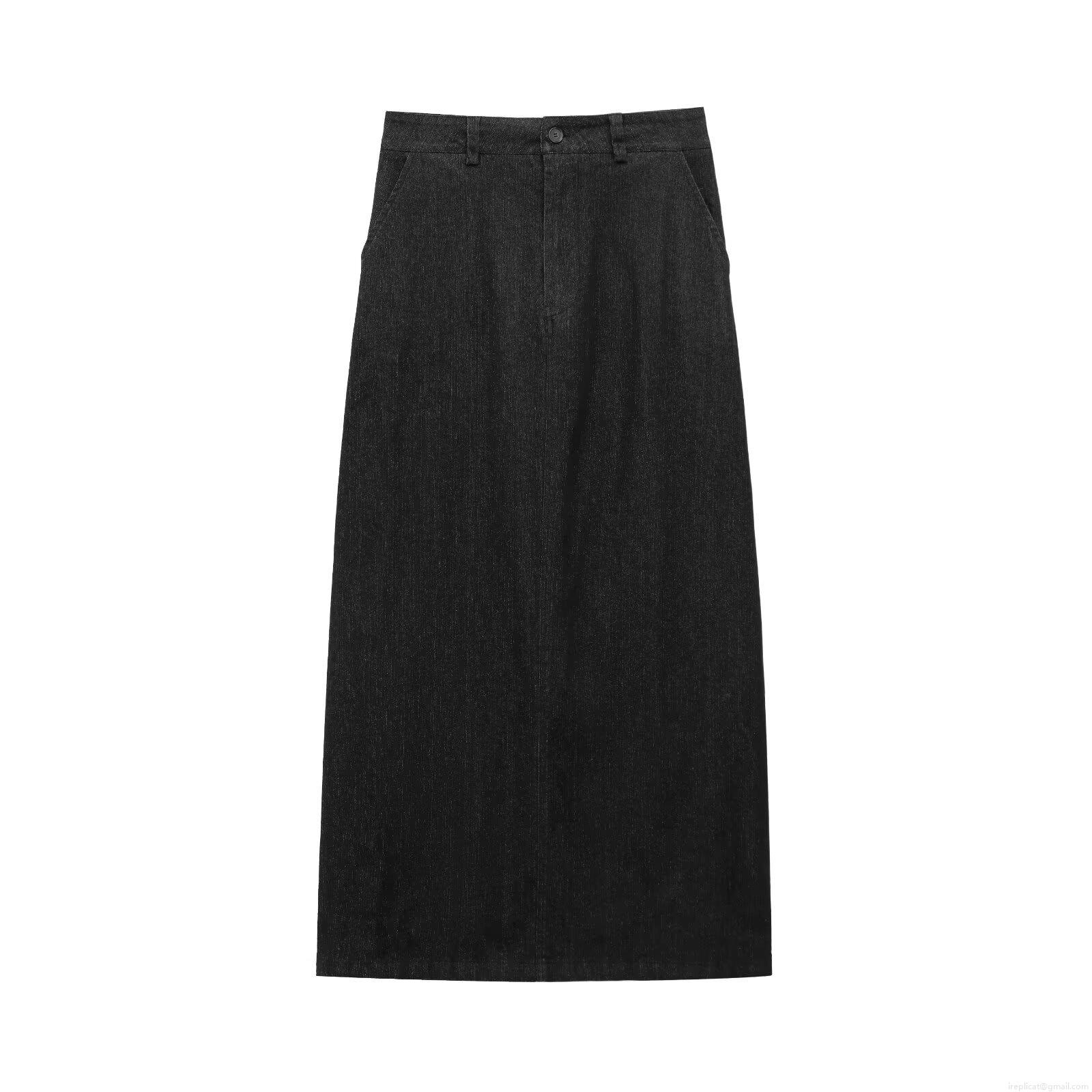 • Women's Sleeveless Denim Two Piece Set Round Neck Single Breasted Vest And High Waist Midi Skirt Solid Color Black Cotton Blend Streetwear Casual Outfits For Women