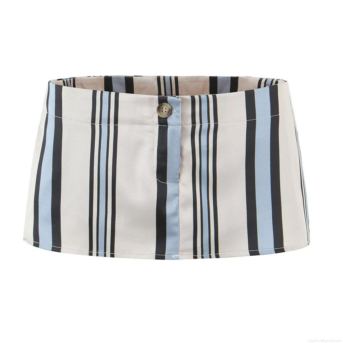 • Women's Striped Halter Top And Mini Skirt Two Piece Set 2025 Summer European Street Style Contrast Color Polyester Outfits Casual Short Vest Skirt Set For Women