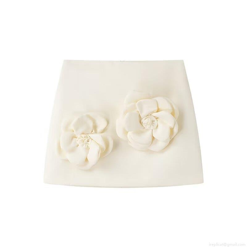 Women's Summer 2 Piece Skirt Set 3D Camellia Flower Decor Sleeveless Round Neck Vest Top Mini Skirt Fashion Streetwear Co-ords