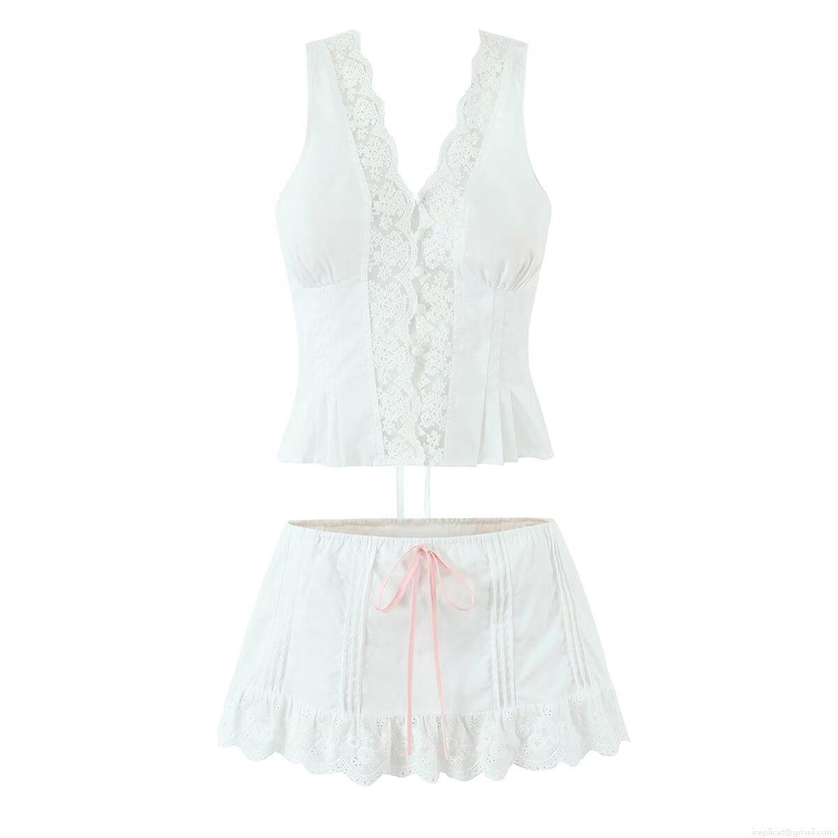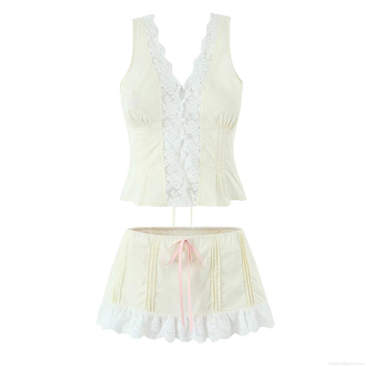 • Women's Summer 2-Piece Lace Camisole And Skirt Set Sweet V-Neck Cotton Outfits Street Party Vacation Slim Fit Two Piece Set Clothing